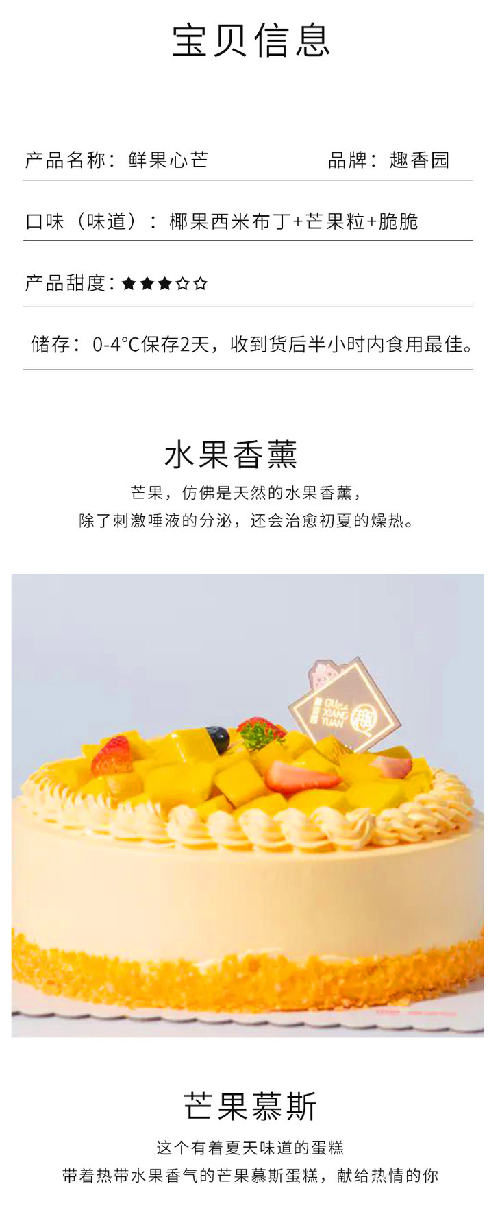 趣香园始创于1992年,是一家专业从事蛋糕、面包、喜饼、月饼产生与销售连锁型企业。二十多年来,企业本着“以人为本、营养健康”的原则,不断创新,稳健发展,目前在东莞已拥有40多家实体连锁经营门店。
