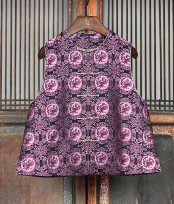 限量款| 盛唐牡丹|花开祥瑞宋锦圆领马甲