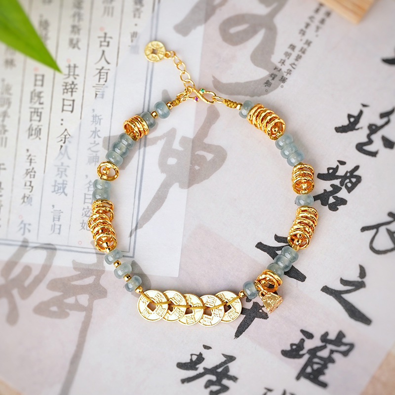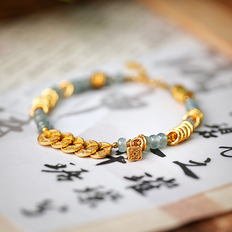 春夏最适合带的翡翠盘缠小手链,天然蓝水翡翠搭配五帝币有钱又有颜,手链上还塔配一个称心如意小滴溜,上下呼应太讨喜啦戴起来真的很心水