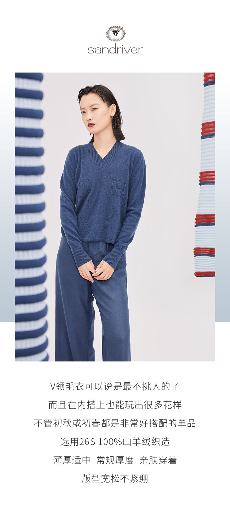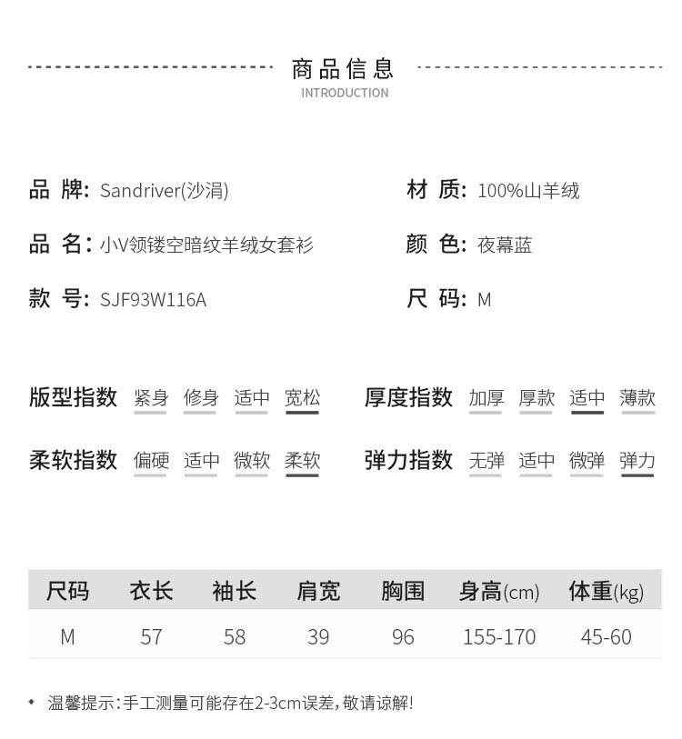 小V领镂空暗纹羊绒女套衫 SJF93W116A