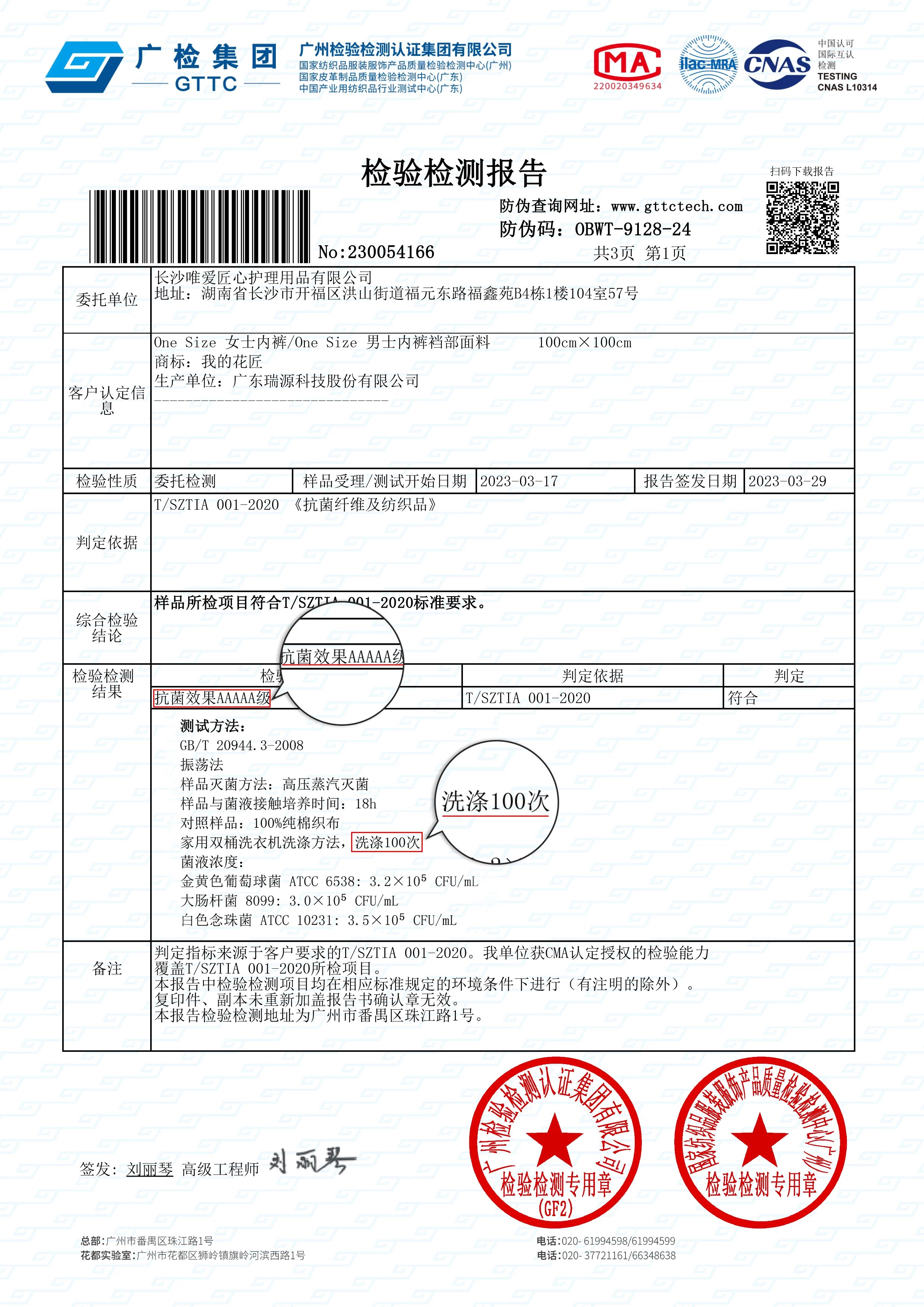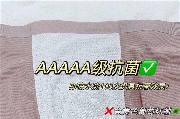 裆部采用AAAAA级抗菌面料,即使水洗100次仍具抗菌效果,持久呵护私处健康!