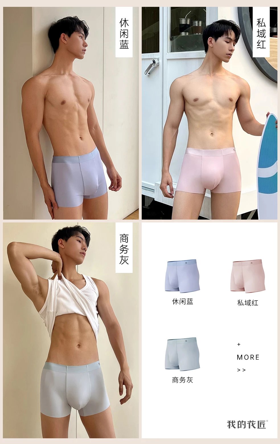 穿上它时,会有一种没穿的错觉,这就是高端男士内裤应有的样子,无论是蹲坐还是站立,还是运动,一整天的舒适,不卡裆不夹臀,自在无拘束,尽情释放男人魅力~