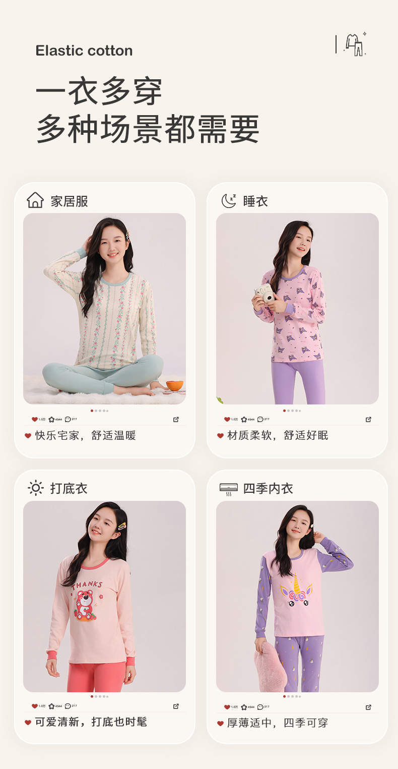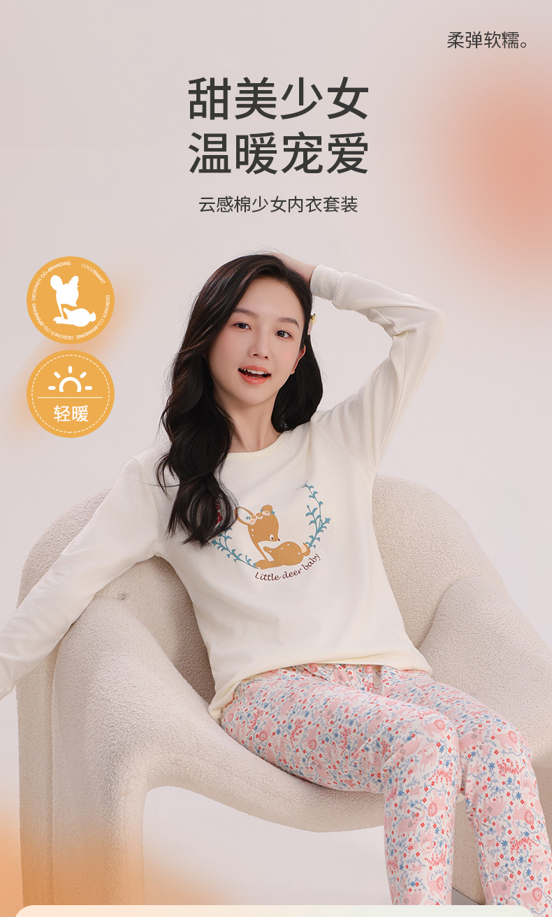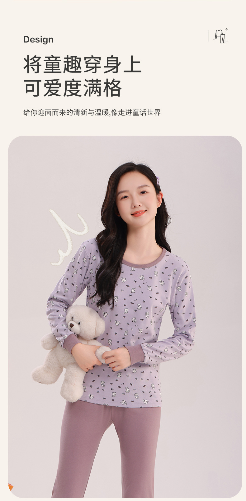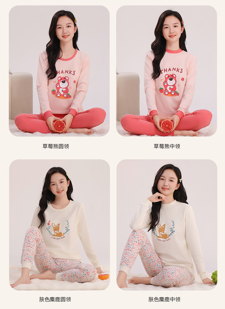 【新疆长绒棉❗️云感纯棉儿童套装】亲肤柔软,1套=家居服+打底衣+睡衣睡裤+四季内衣!新款中大童秋衣秋裤女孩衬衣衬裤青少女全棉毛衫内衣家居服