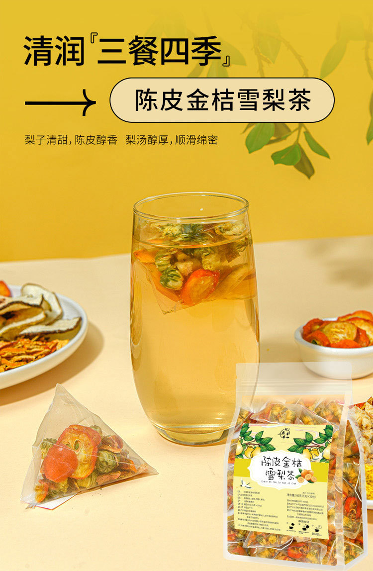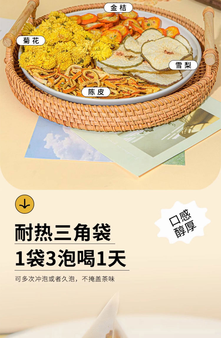 陈皮金桔雪梨茶 咽喉茶 秋梨菊花清润干痒水果茶咽喉秋冬养生泡水喝茶包