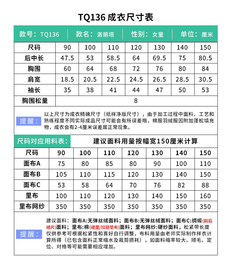 裁缝学苑TQ136公主女童连衣裙洛丽塔裙子纸样儿童新款礼服裙样板