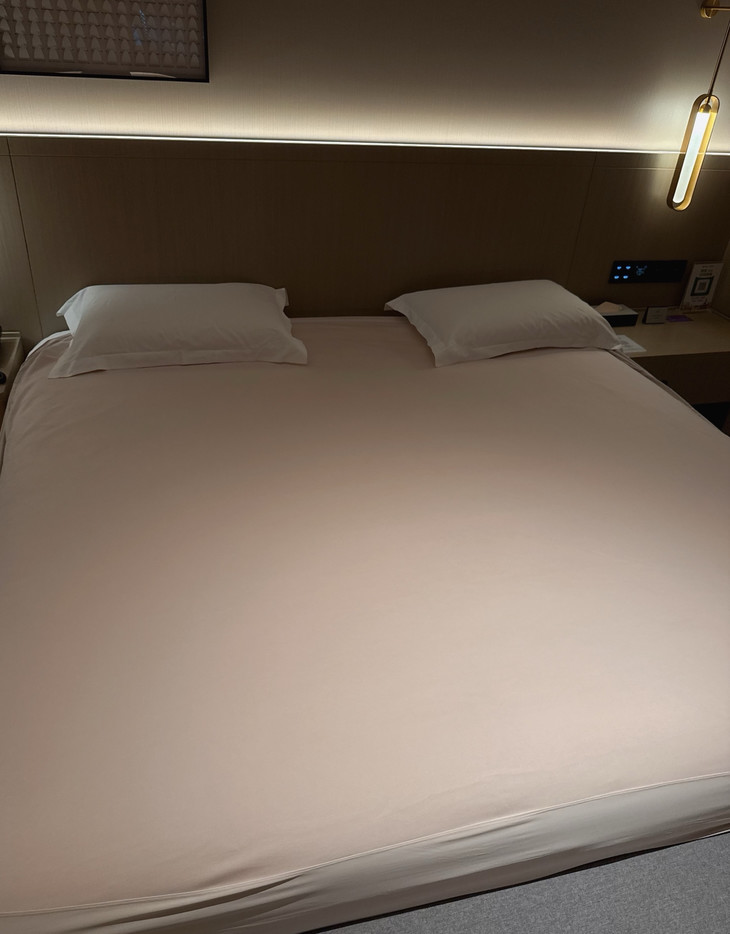 短边梭织+长边弹力像装了隐形磁铁,往床沿一扣就紧密包裹,睡醒掀被看到「零褶痕」的瞬间简直是强迫症的睡眠救赎!裸感和平整就是亚朵为整床注入了更温柔的灵魂