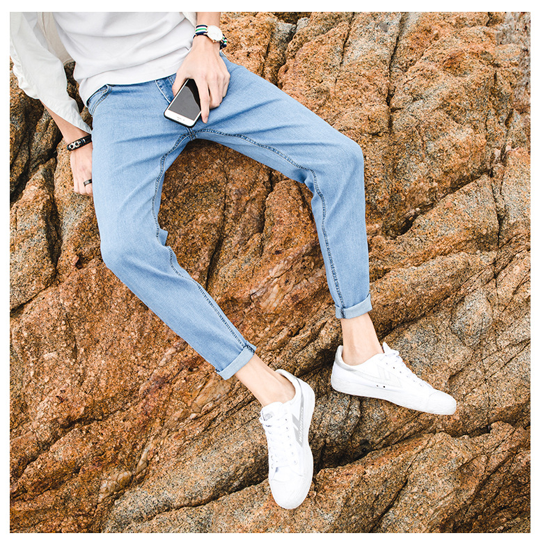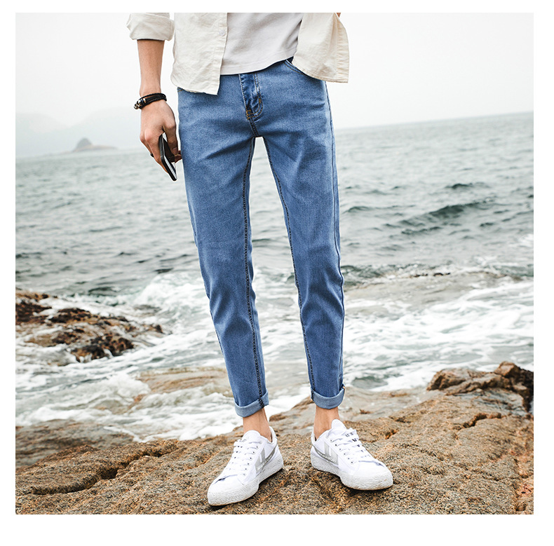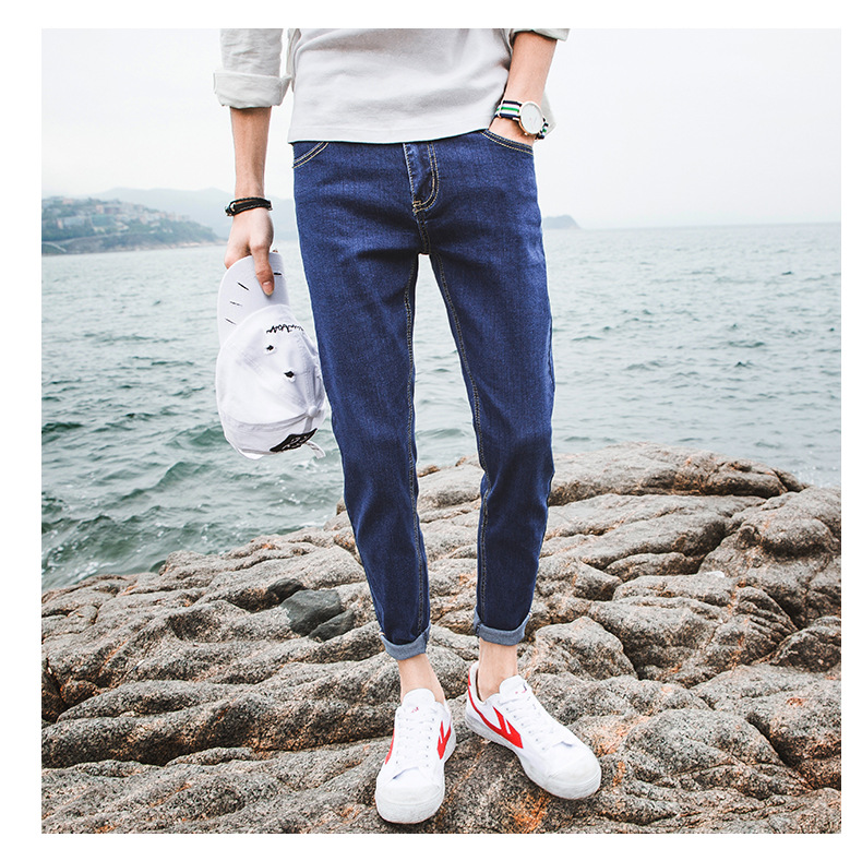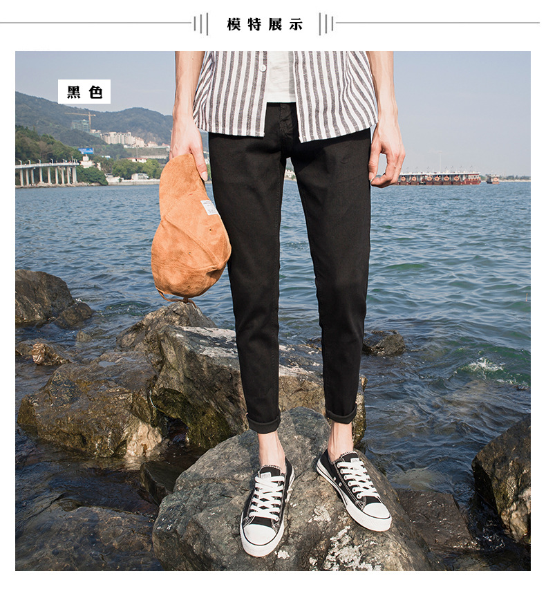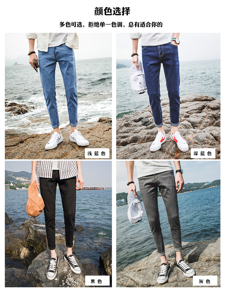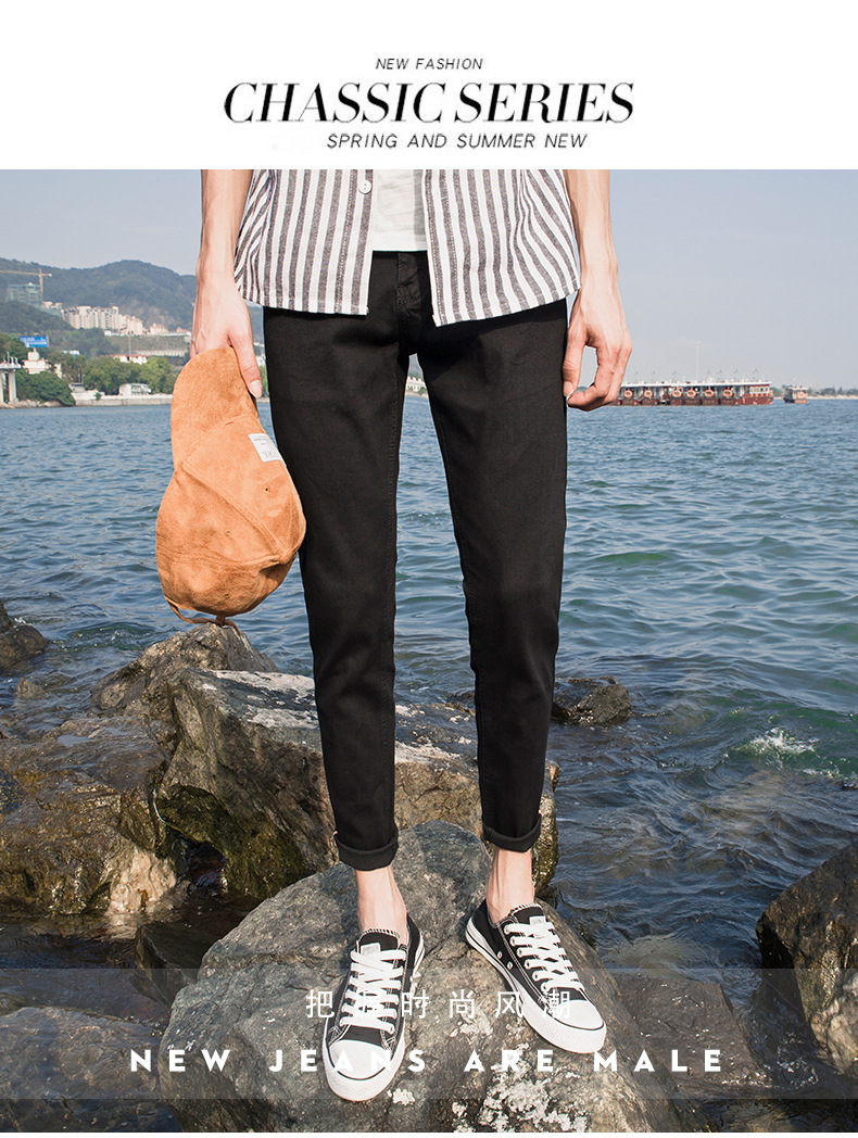 【服饰鞋包】男式牛仔裤 韩版男装修身小脚弹力裤子 薄款九分牛仔裤男