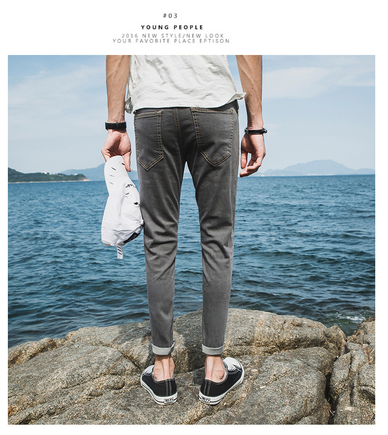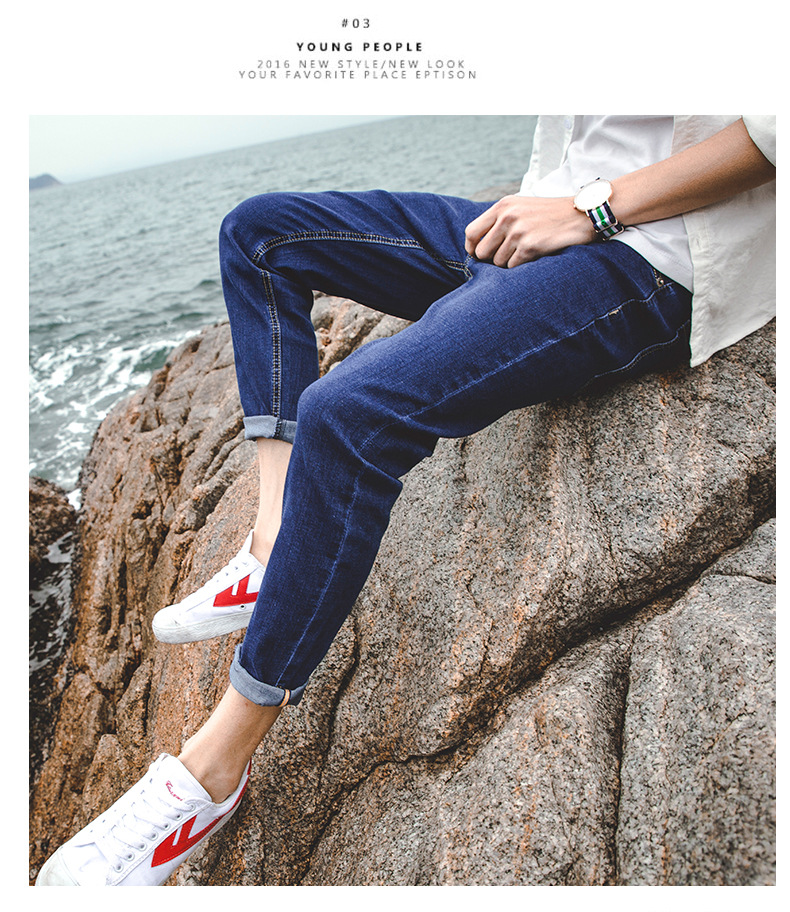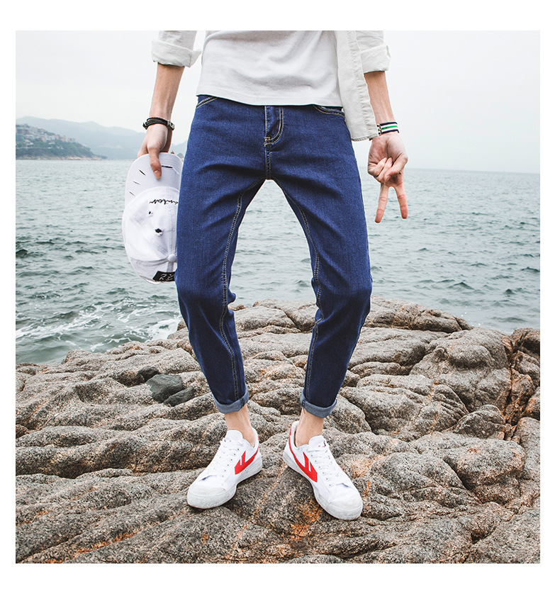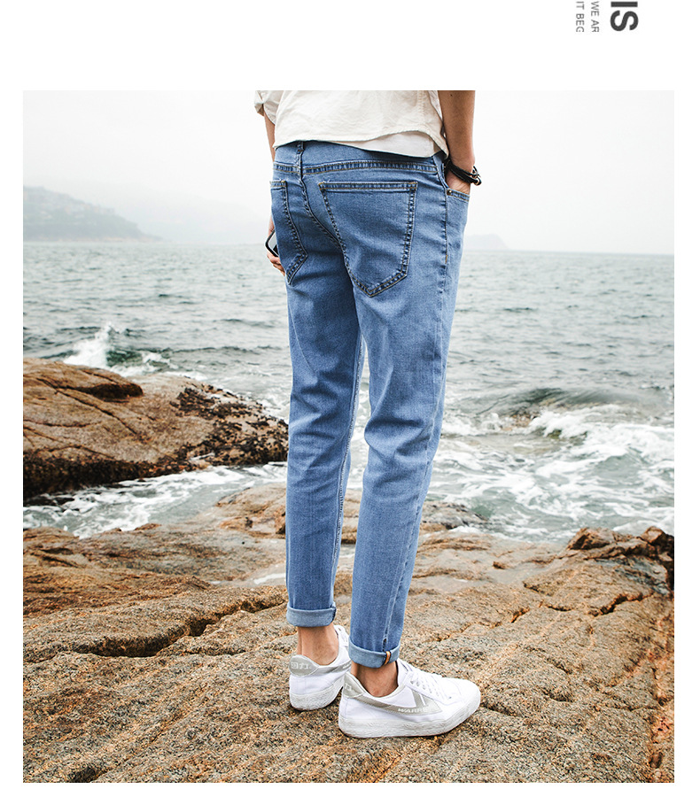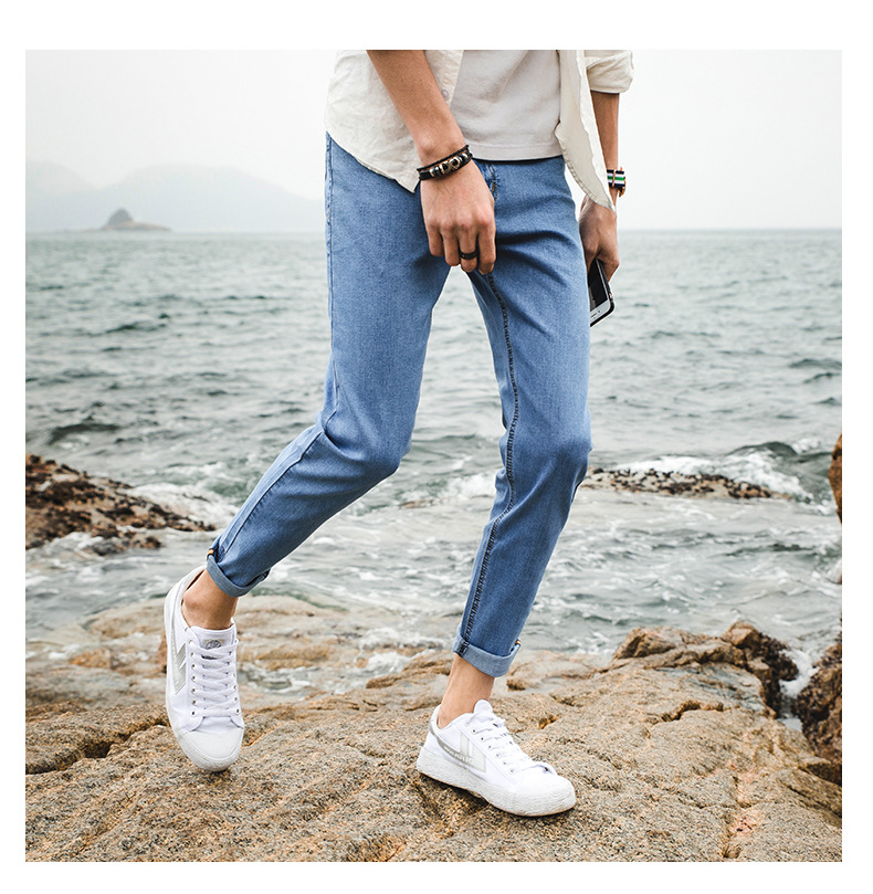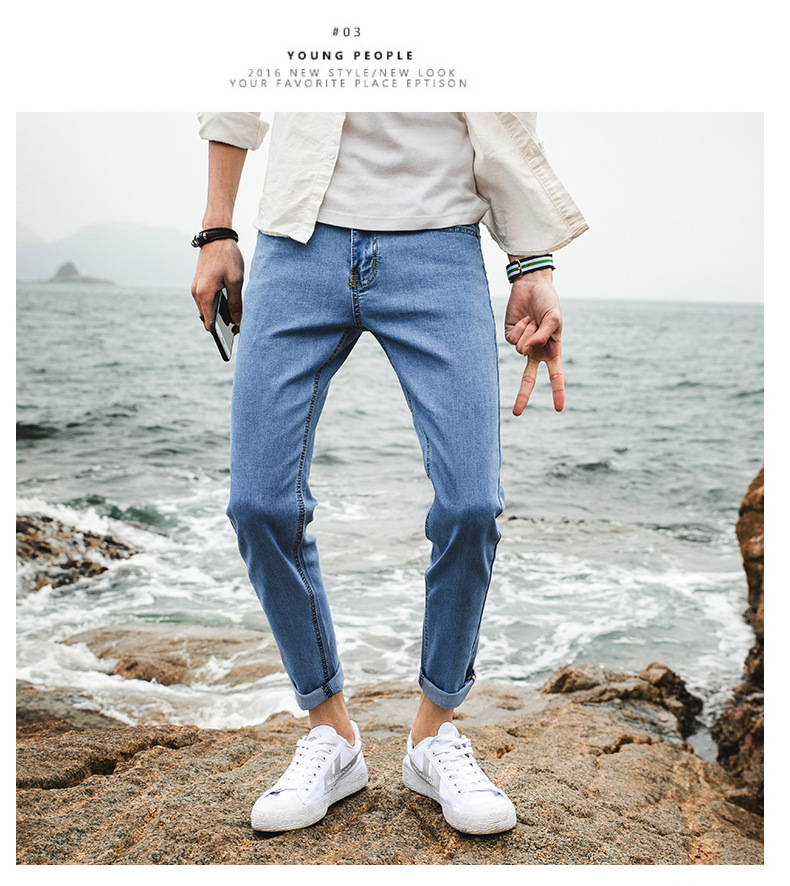 【服饰鞋包】男式牛仔裤 韩版男装修身小脚弹力裤子 薄款九分牛仔裤男