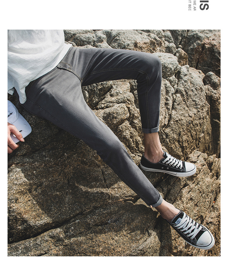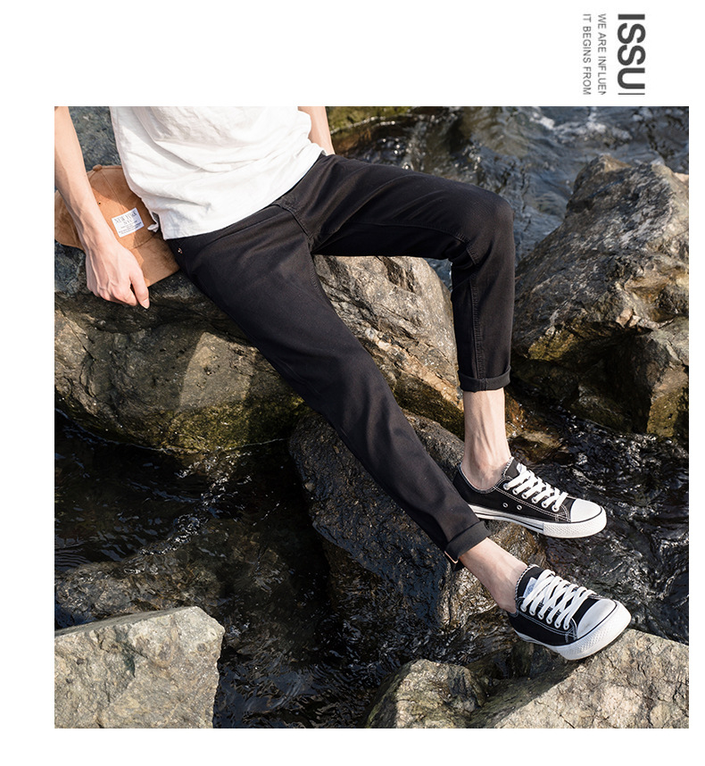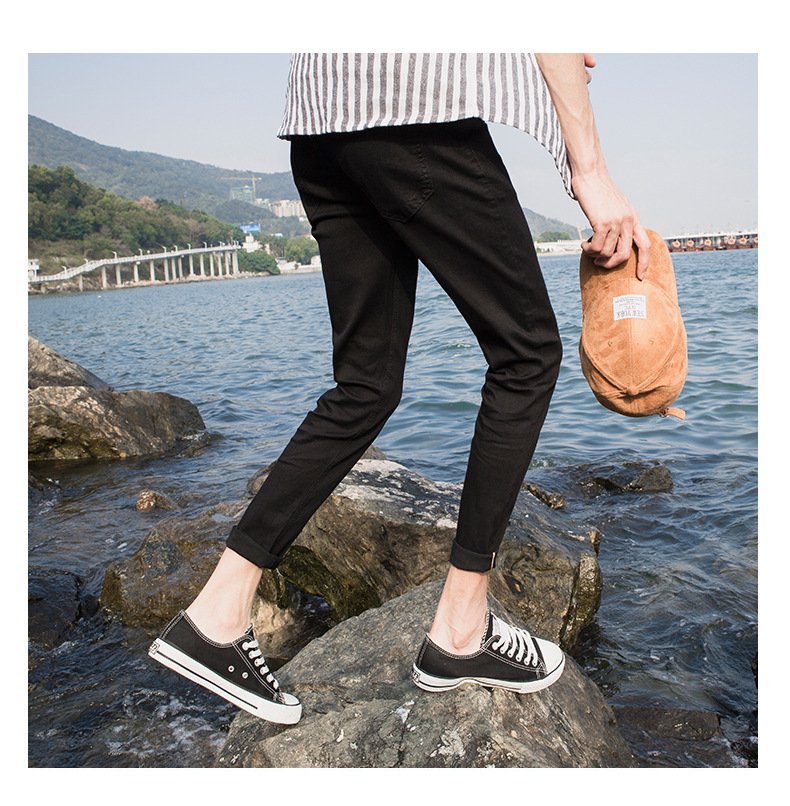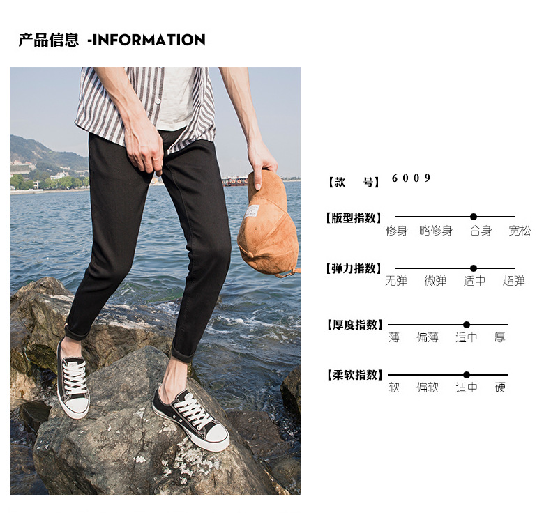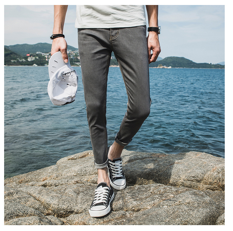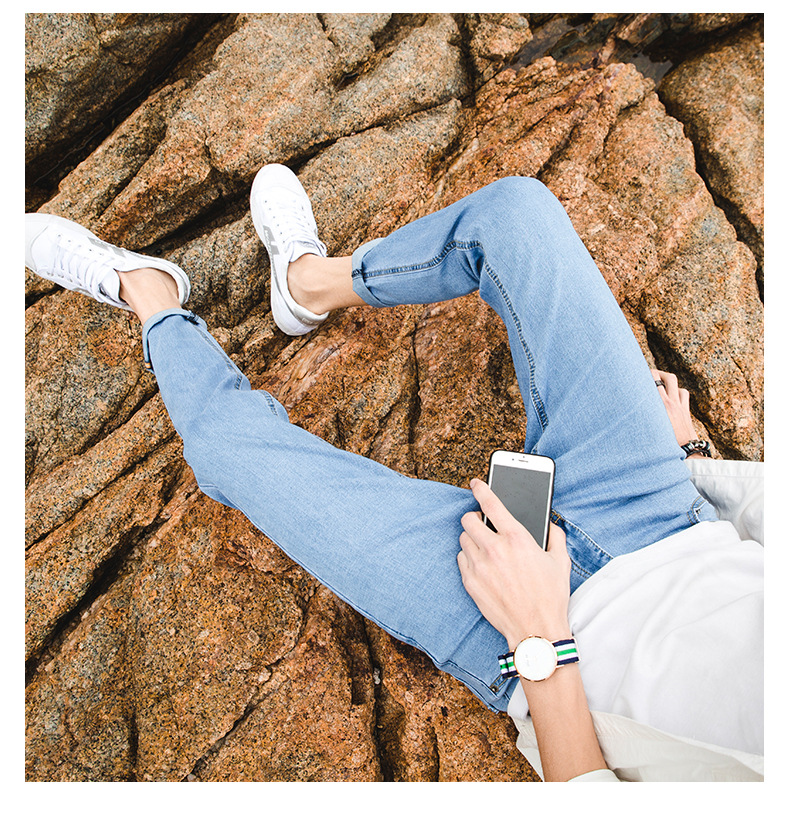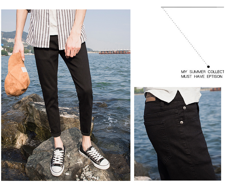 【服饰鞋包】男式牛仔裤 韩版男装修身小脚弹力裤子 薄款九分牛仔裤男
