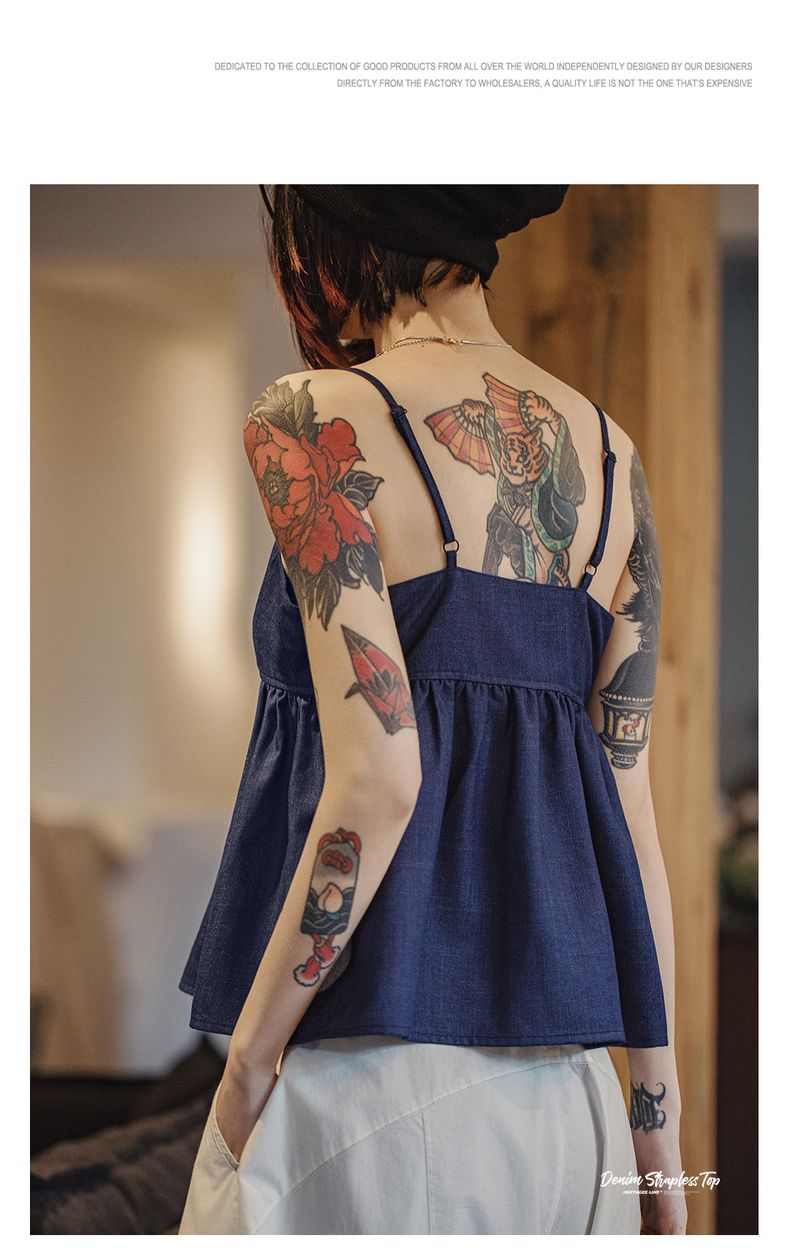 马登夏日Y2K性感高腰吊带V领露背背心辣妹无袖外叠穿显锁骨上衣女
