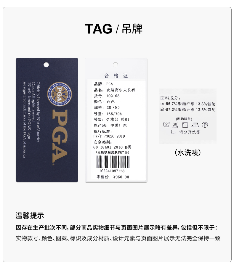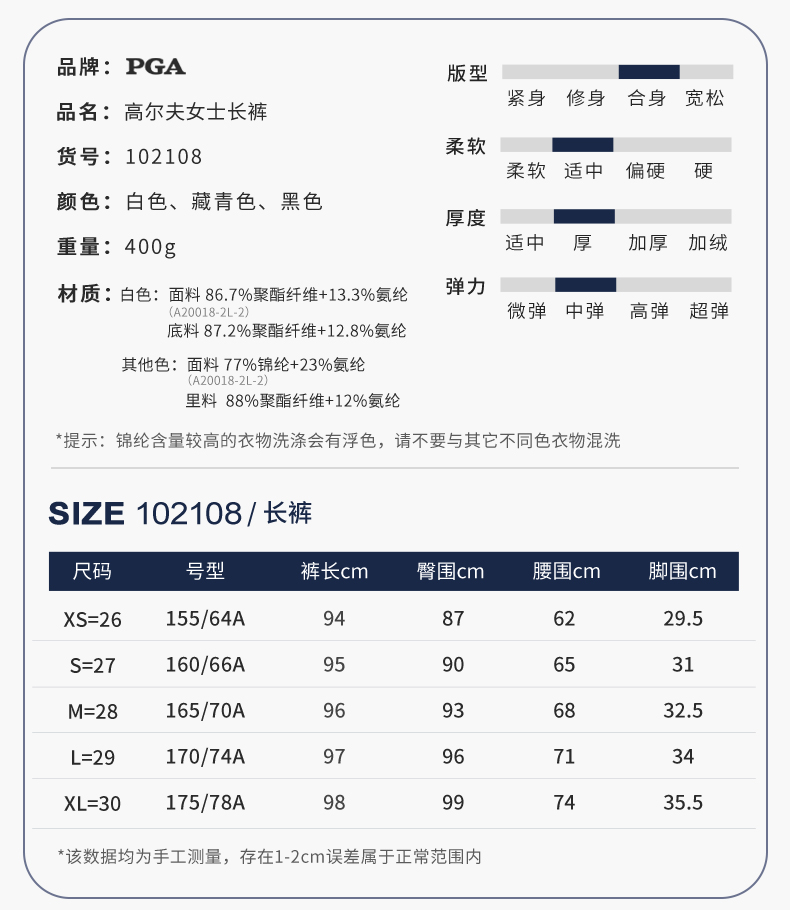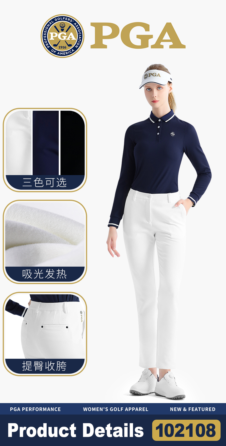 美国PGA 高尔夫服装女士长裤保暖吸光发热面料百搭显高显瘦裤子