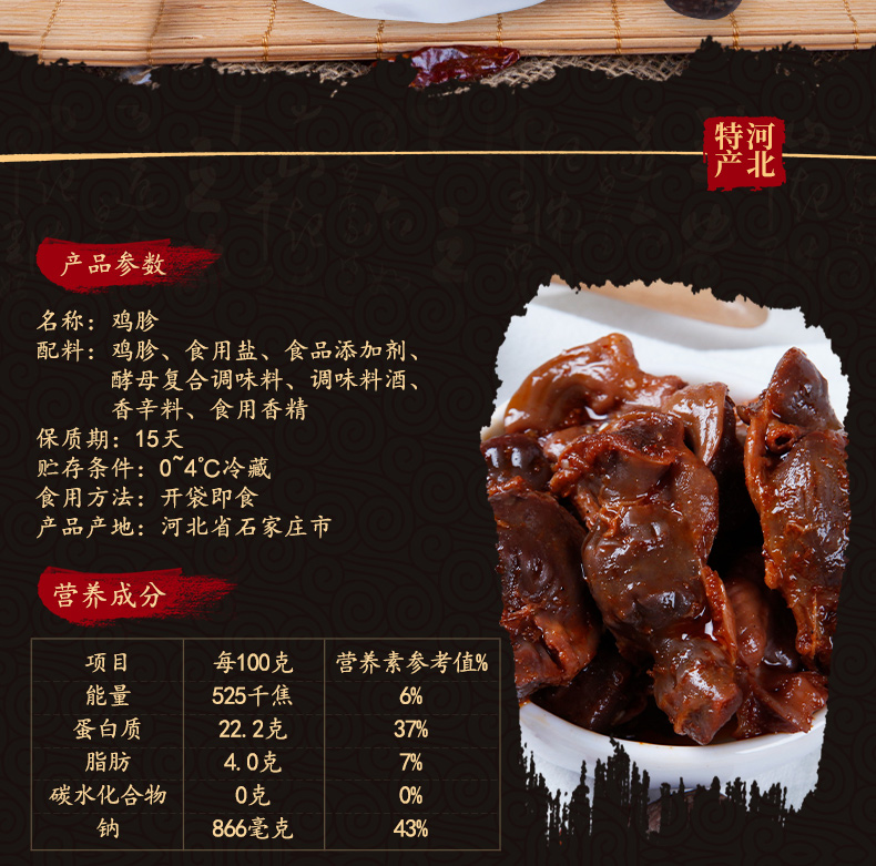 金凤鲜货/现卤 鸡胗约250克/袋 (京东快递)
