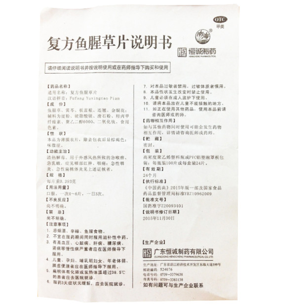 恒诚南海复方鱼腥草片100片 清热解毒外感风热急喉痹急乳蛾咽部肿