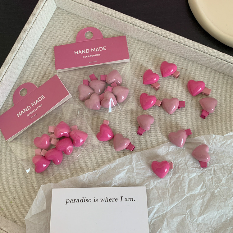 【家居百货】12个装mini蜜桃色爱心小发夹2厘米短夹甜欲风可爱粉色碎发卡子