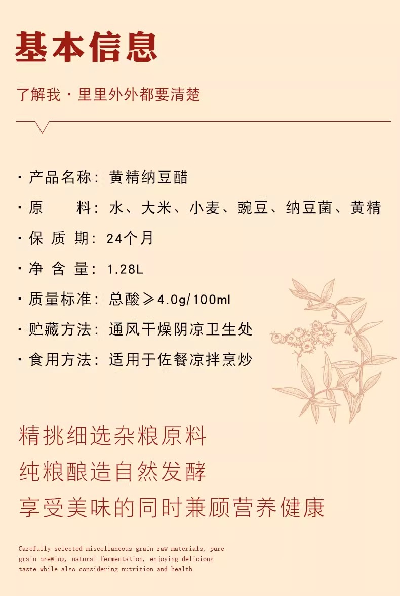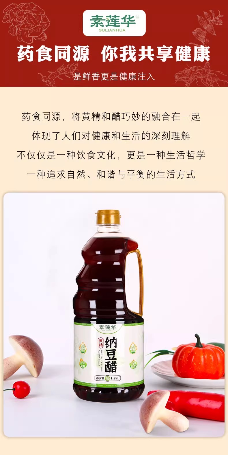 黄精纳豆醋1.28L 素莲华头道原液醋 古法酿造正宗老味道