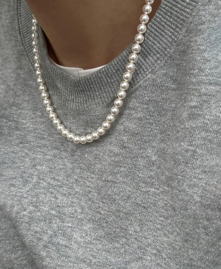 很百搭了!每个女生必定要有一条珍珠项链,属于人造珍珠的模范生,拿在手里沉甸甸的,分量十足。
