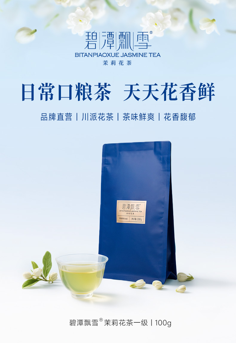 碧潭飘雪茉莉花茶一级茶叶袋装100g四川峨眉山花茶茉莉飘雪自饮装