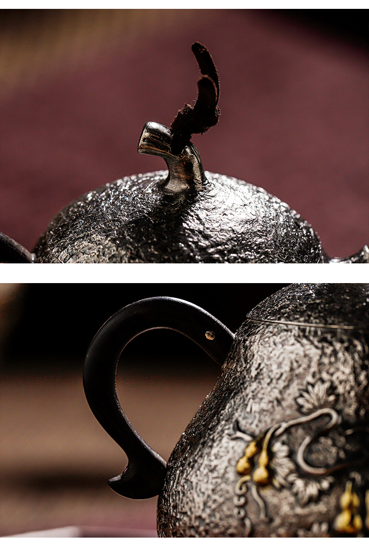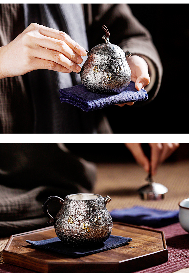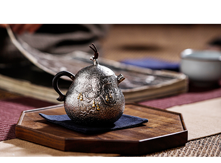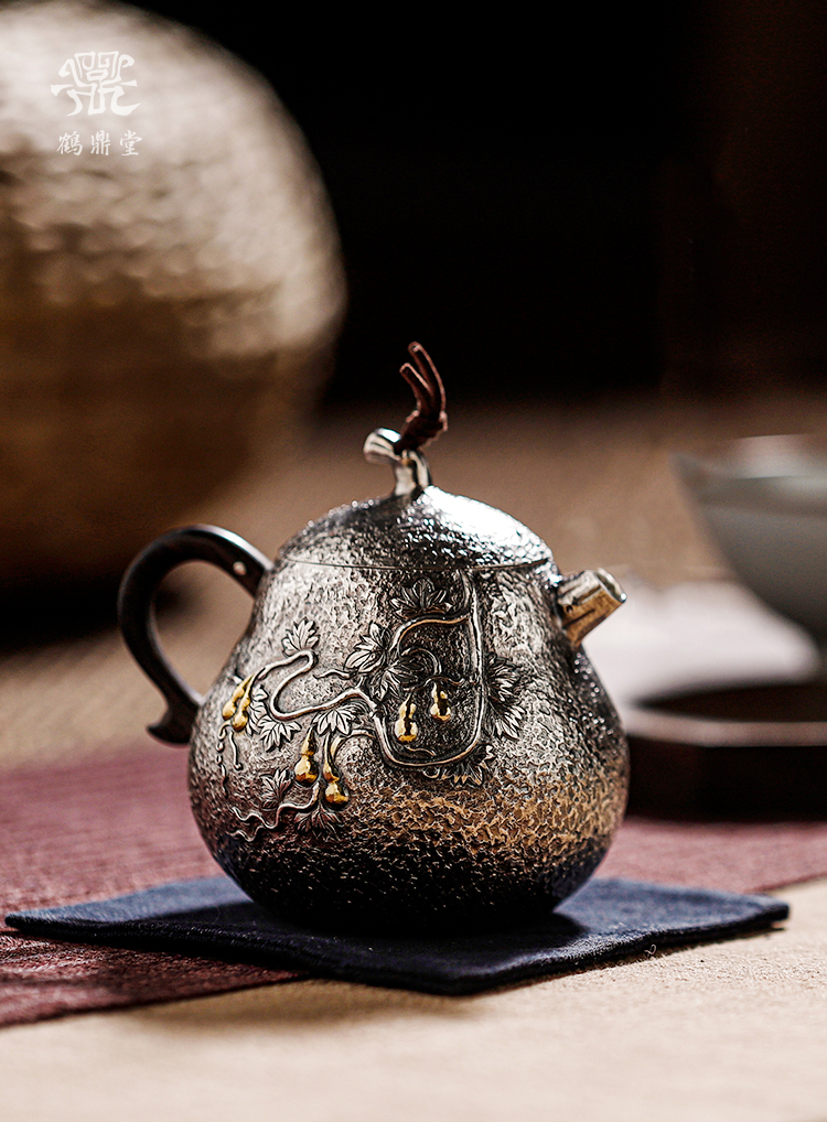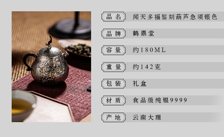 鹤鼎堂闻天系列多福錾刻葫芦急须(银色)(缺货)