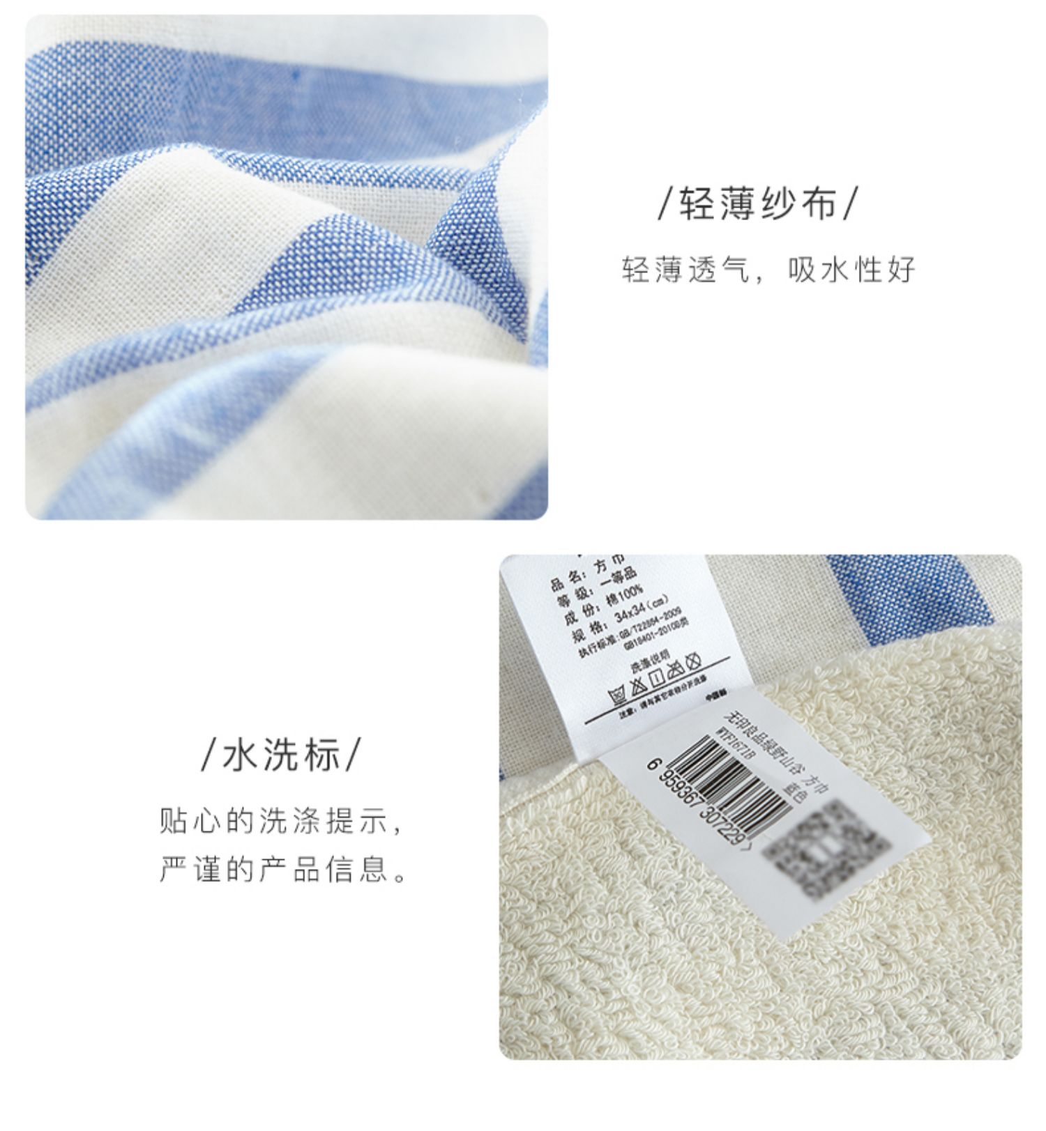 绿野山谷方巾单条 34*34cm 无印良品