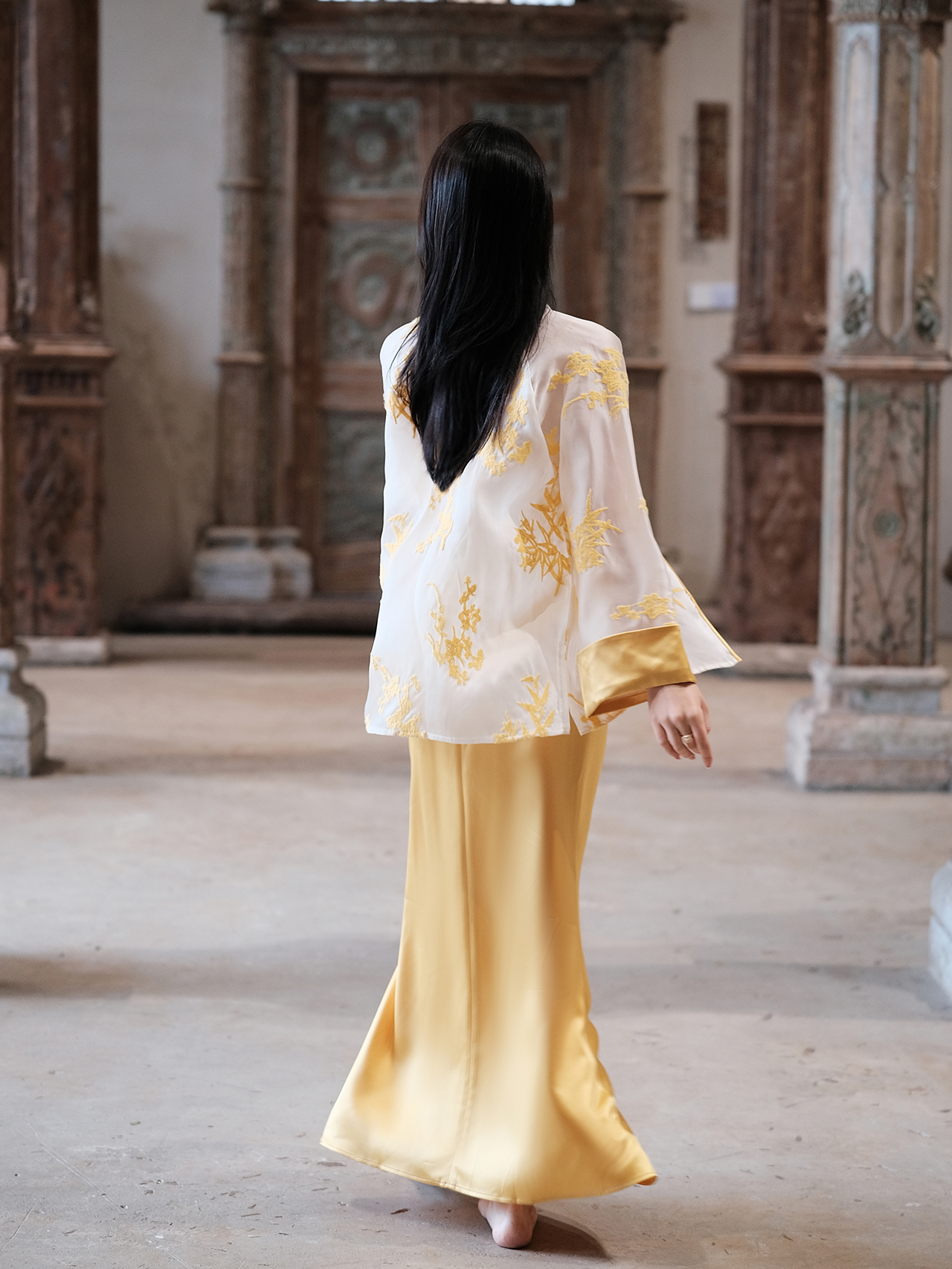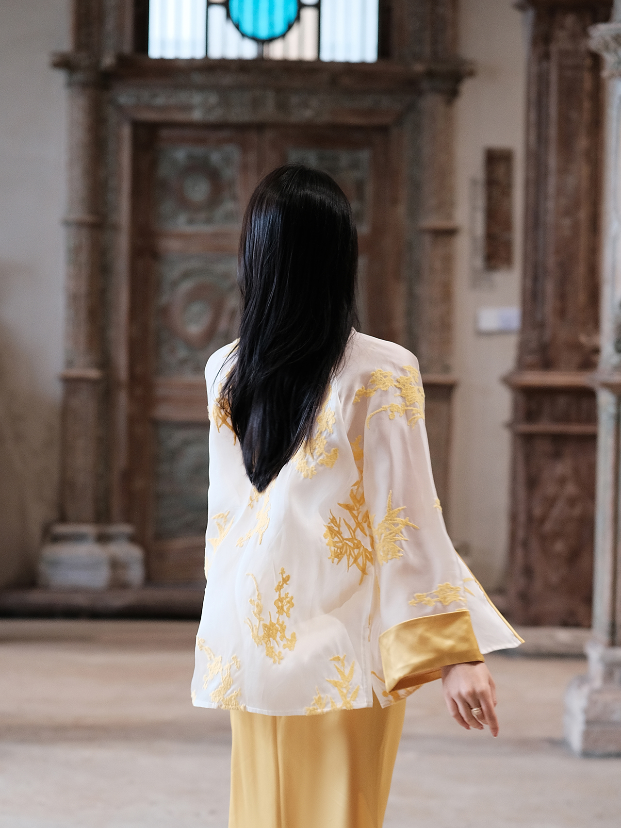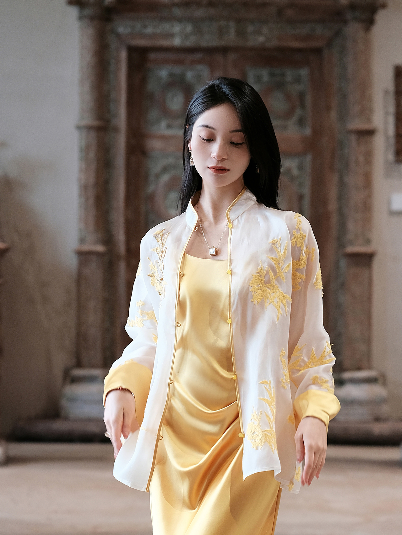 盛唐牡丹 |真丝提花梅兰竹菊偏襟上衣