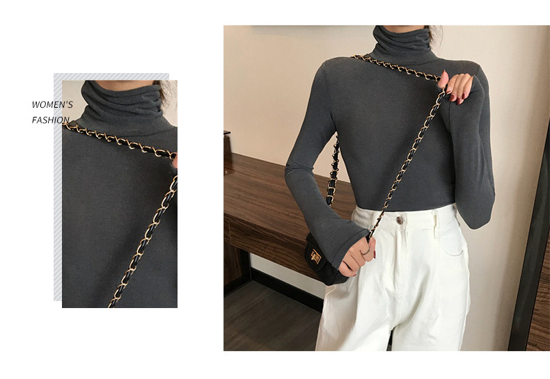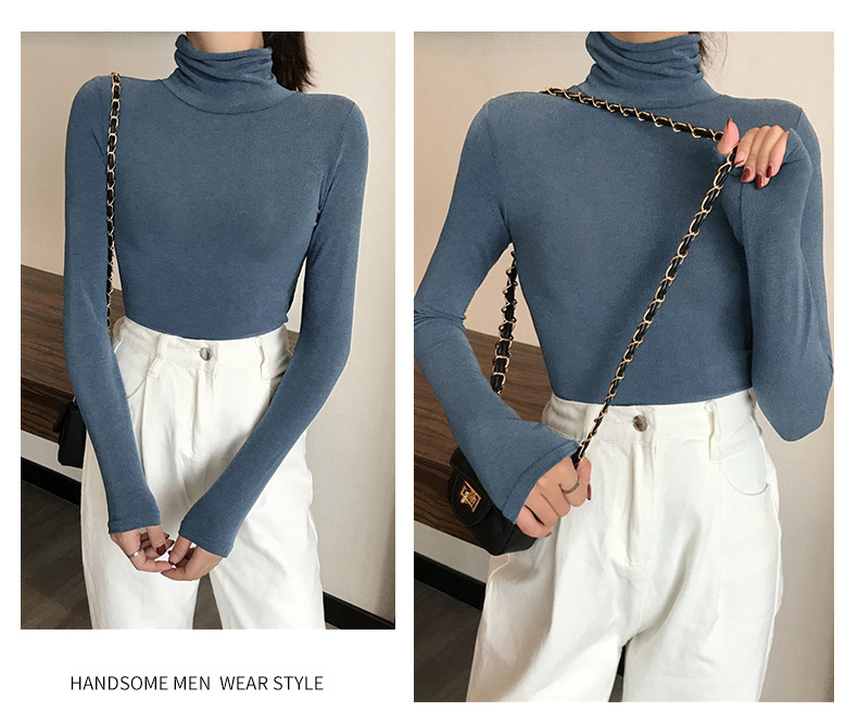 【百搭韩版网红秋冬内搭长袖T恤女修身上衣❗️新款纯色高领打底衫】为你展现兼具内敛和时尚的个人风格