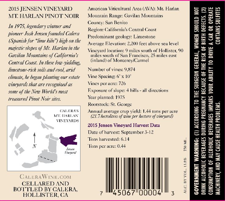 Calera Mt. Harlan Pinot Noir Jensen Vineyard