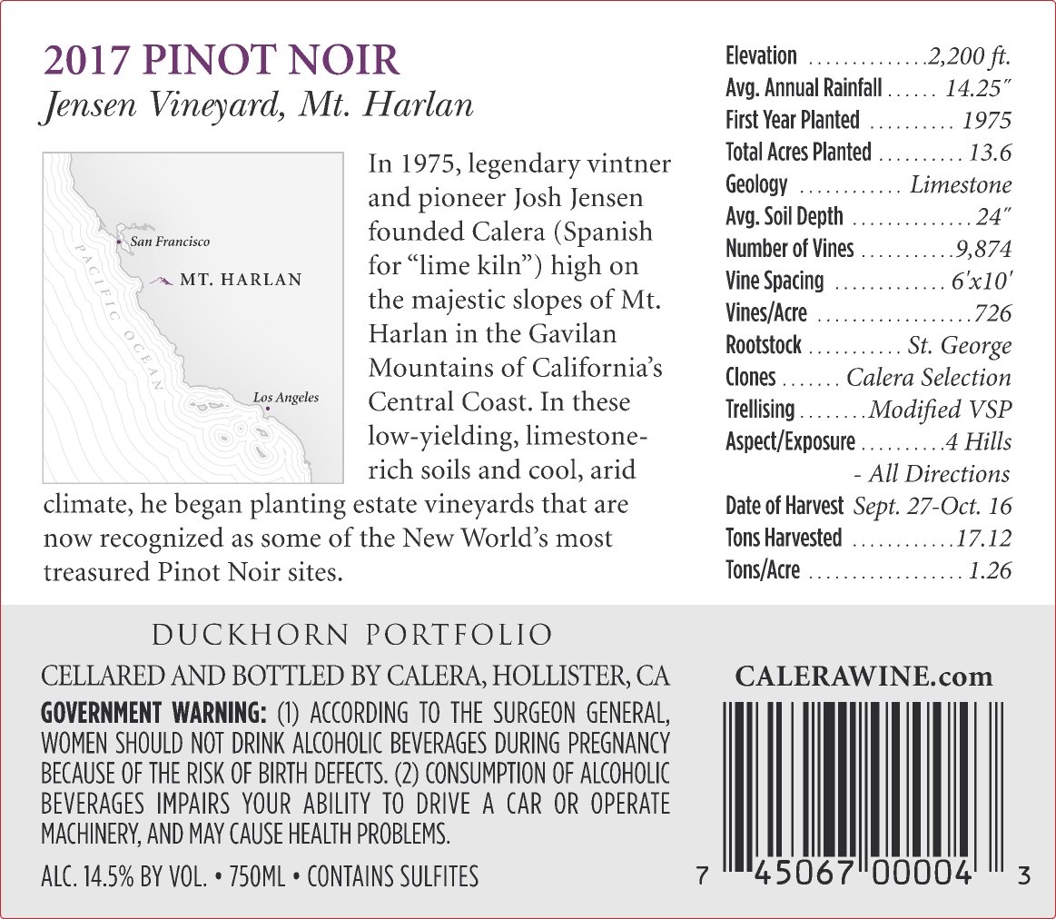 卡勒拉哈兰山詹森单一园黑皮诺干红 2017/2015Calera Mt. Harlan Pinot Noir Jensen Vineyard
