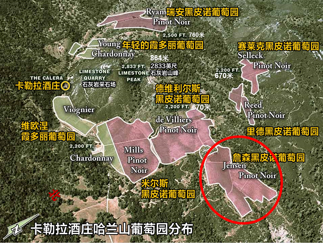 Jensen先生陆续开辟了六块黑皮诺单一特级园。以及一些种植霞多丽、维欧尼和阿里高特的小地块。
