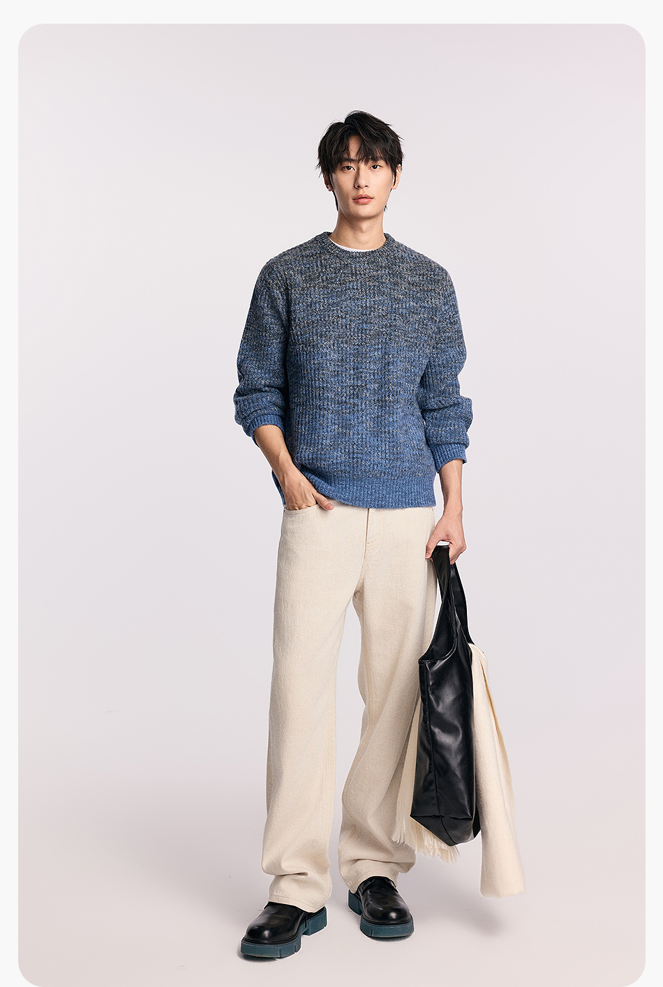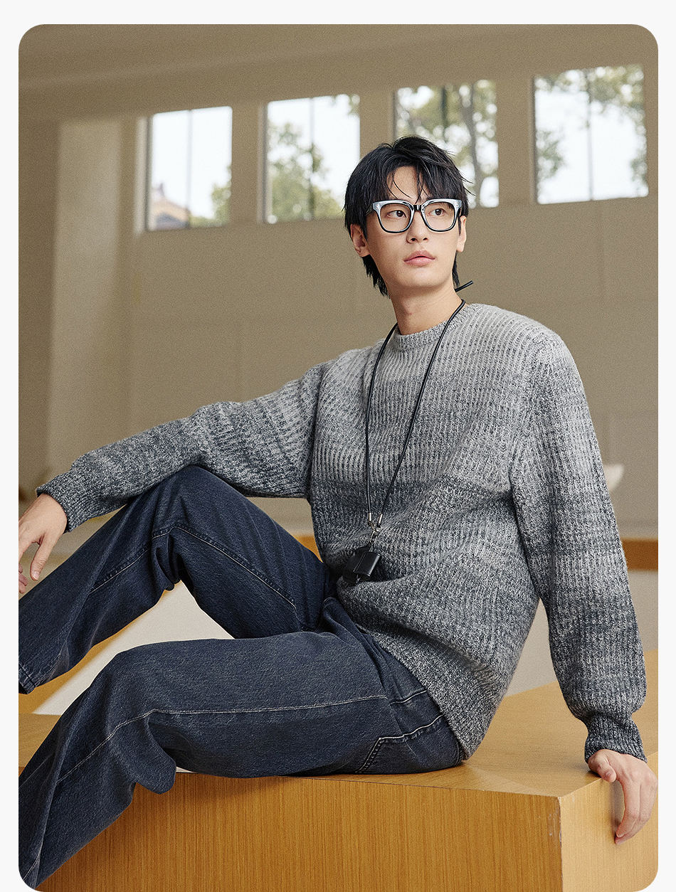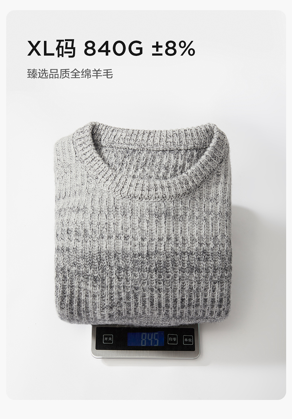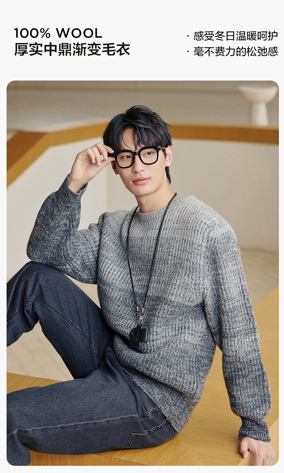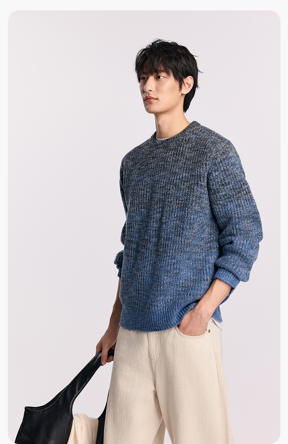 棉仓356826004-宽松渐变全羊毛圆领毛衣