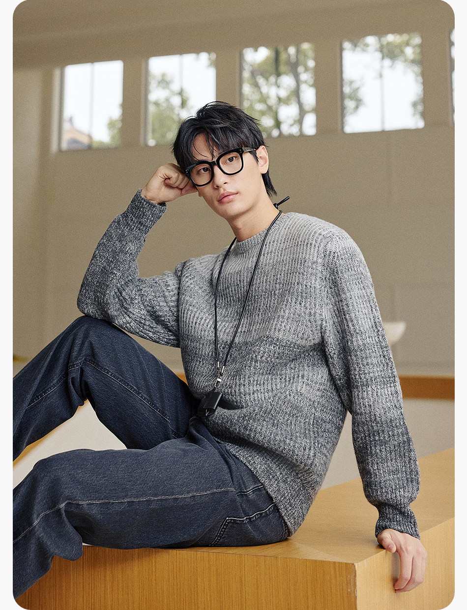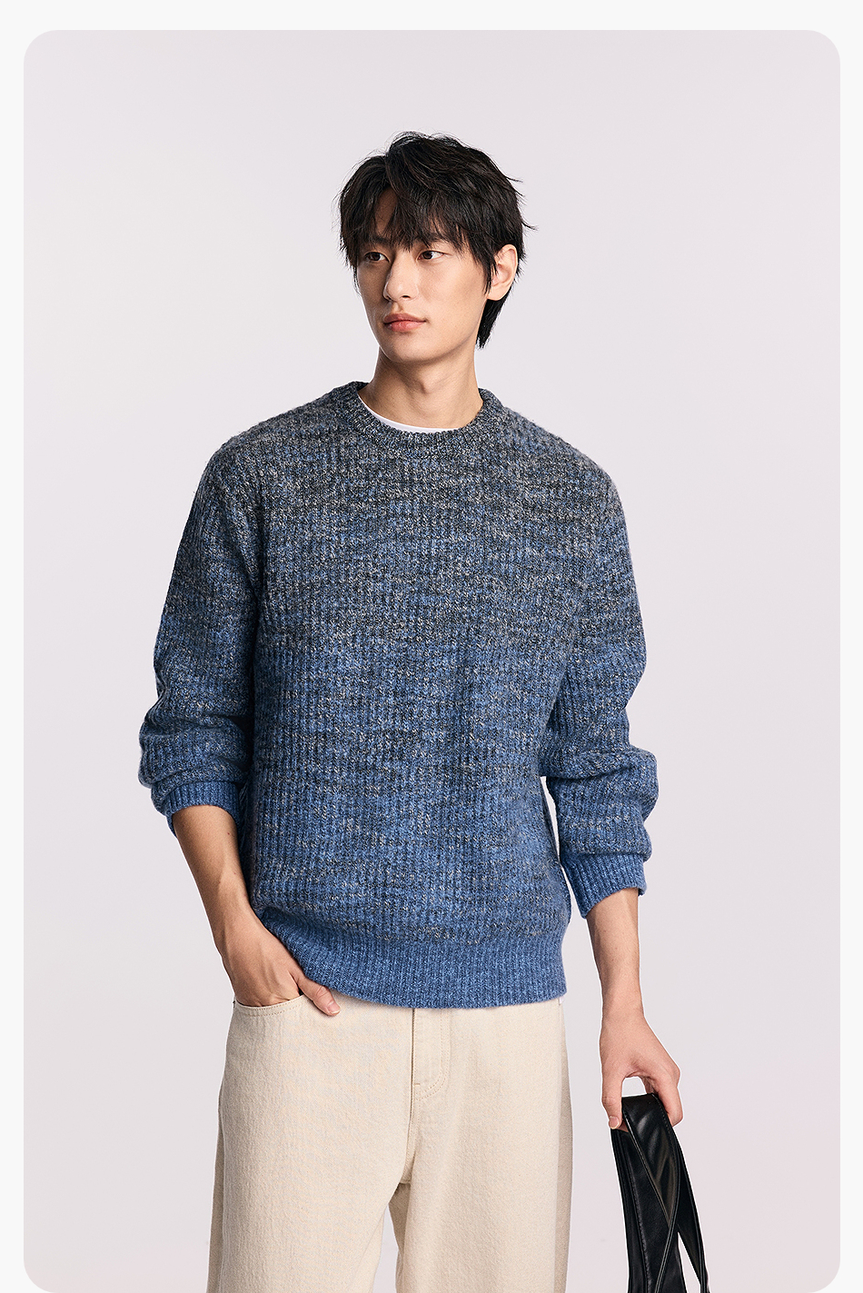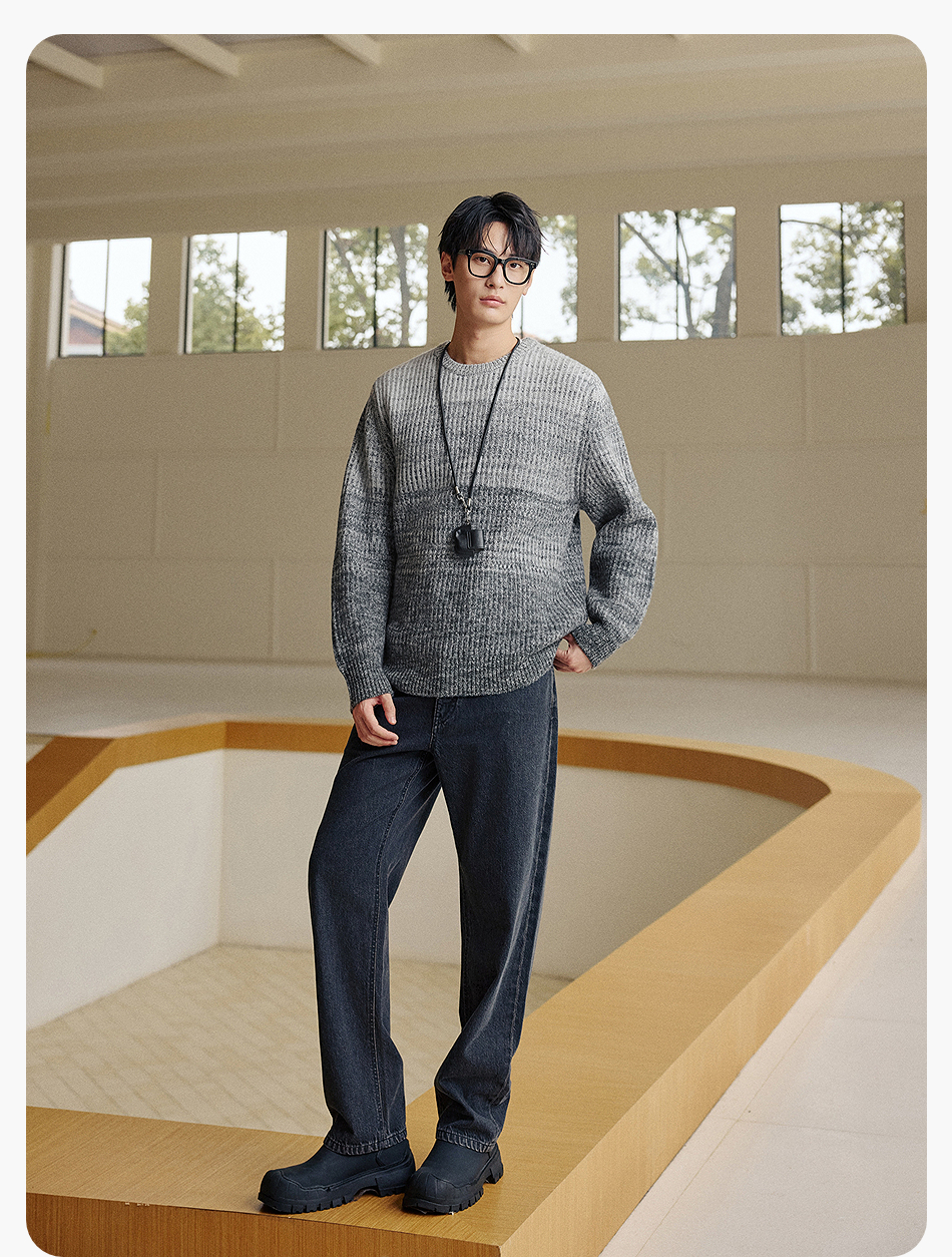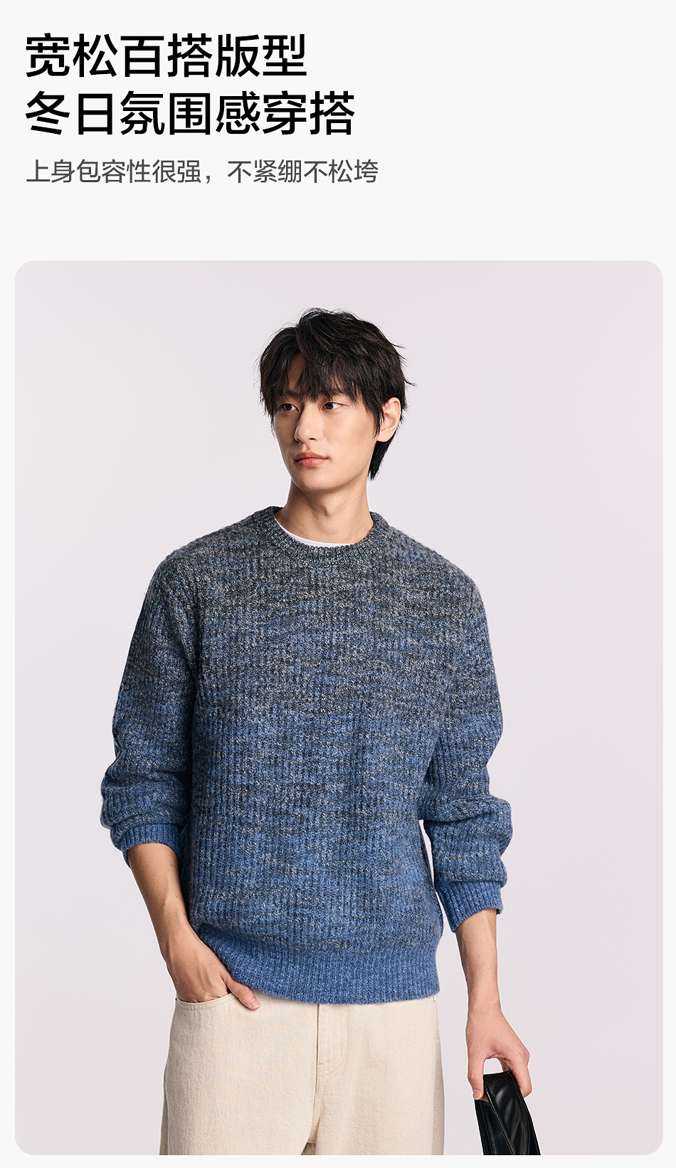 棉仓356826004-宽松渐变全羊毛圆领毛衣