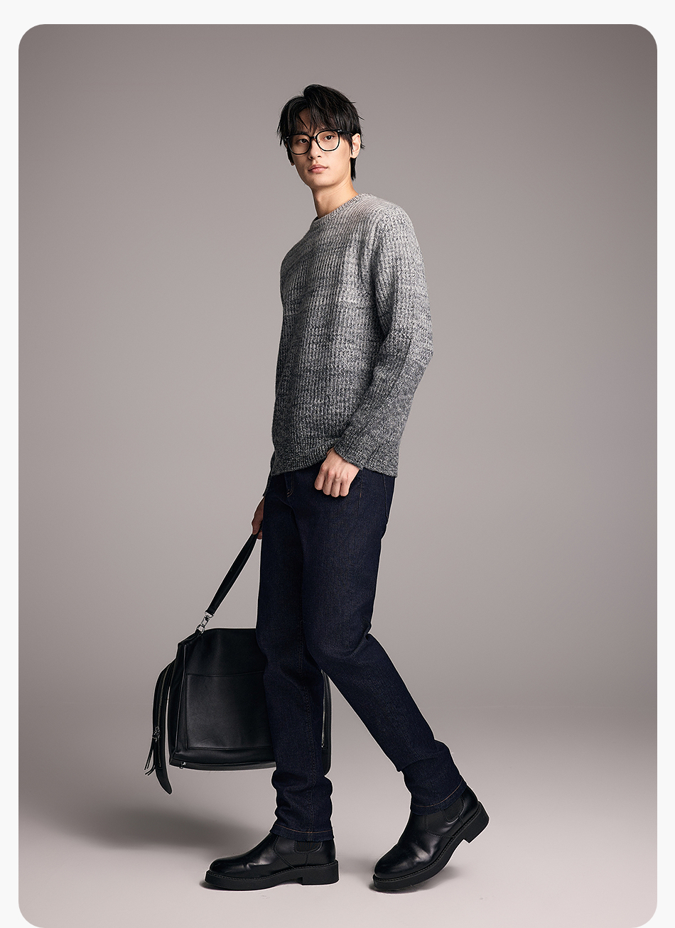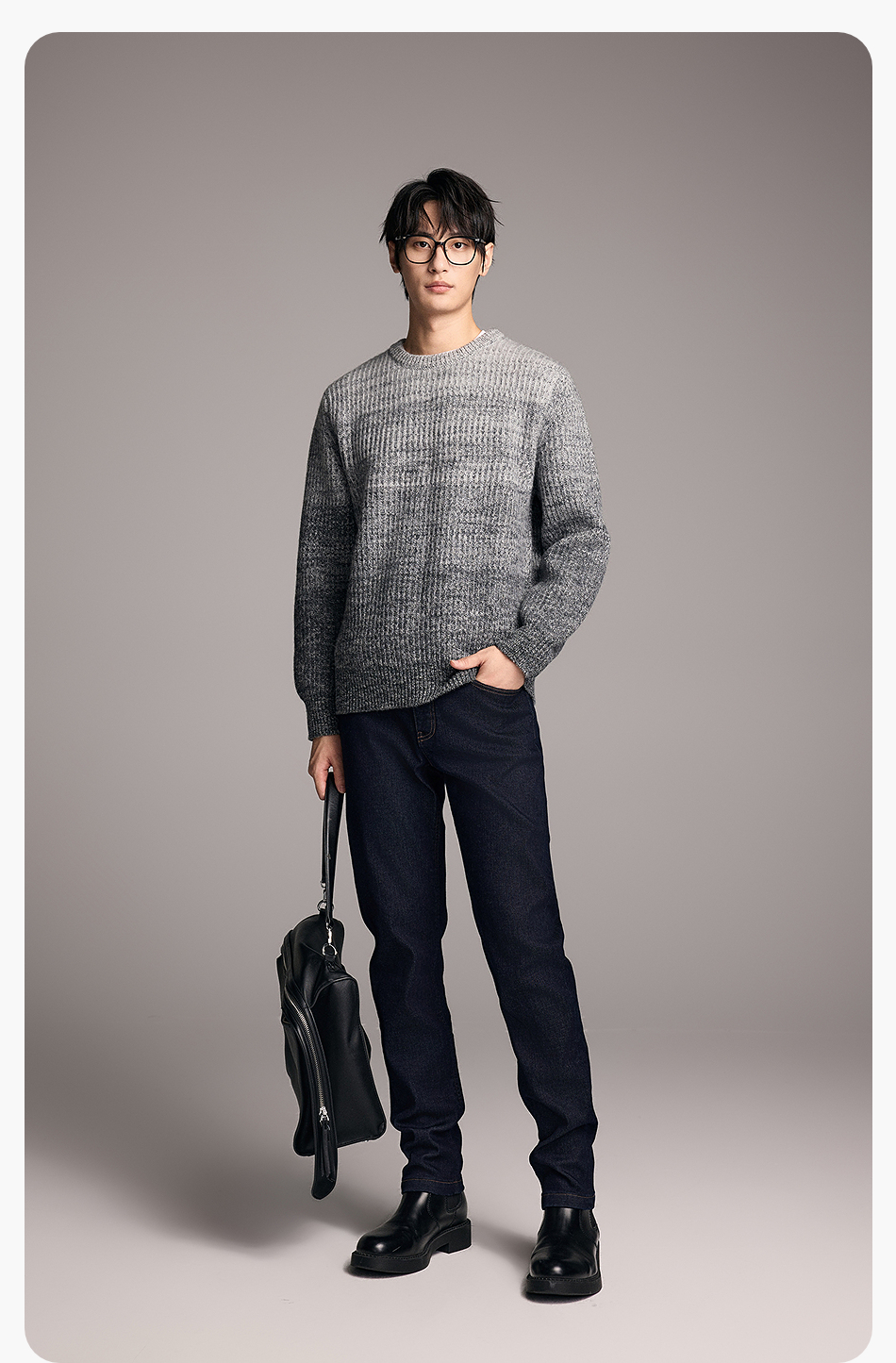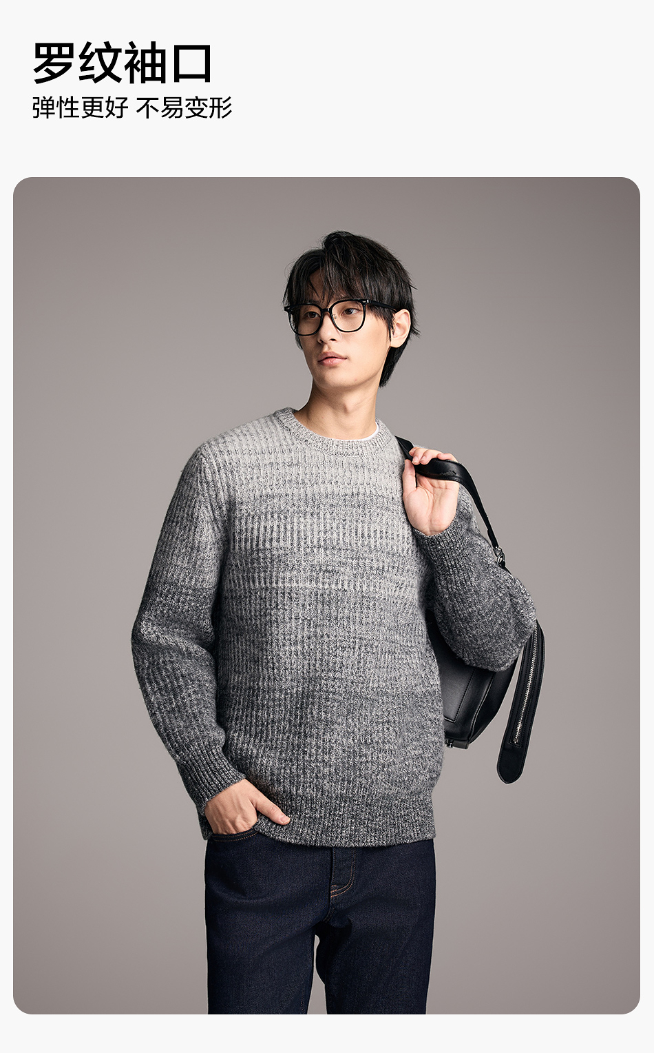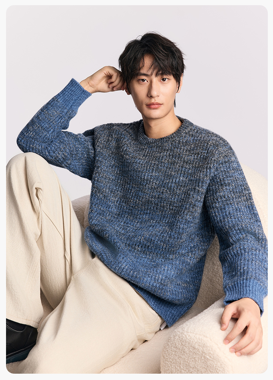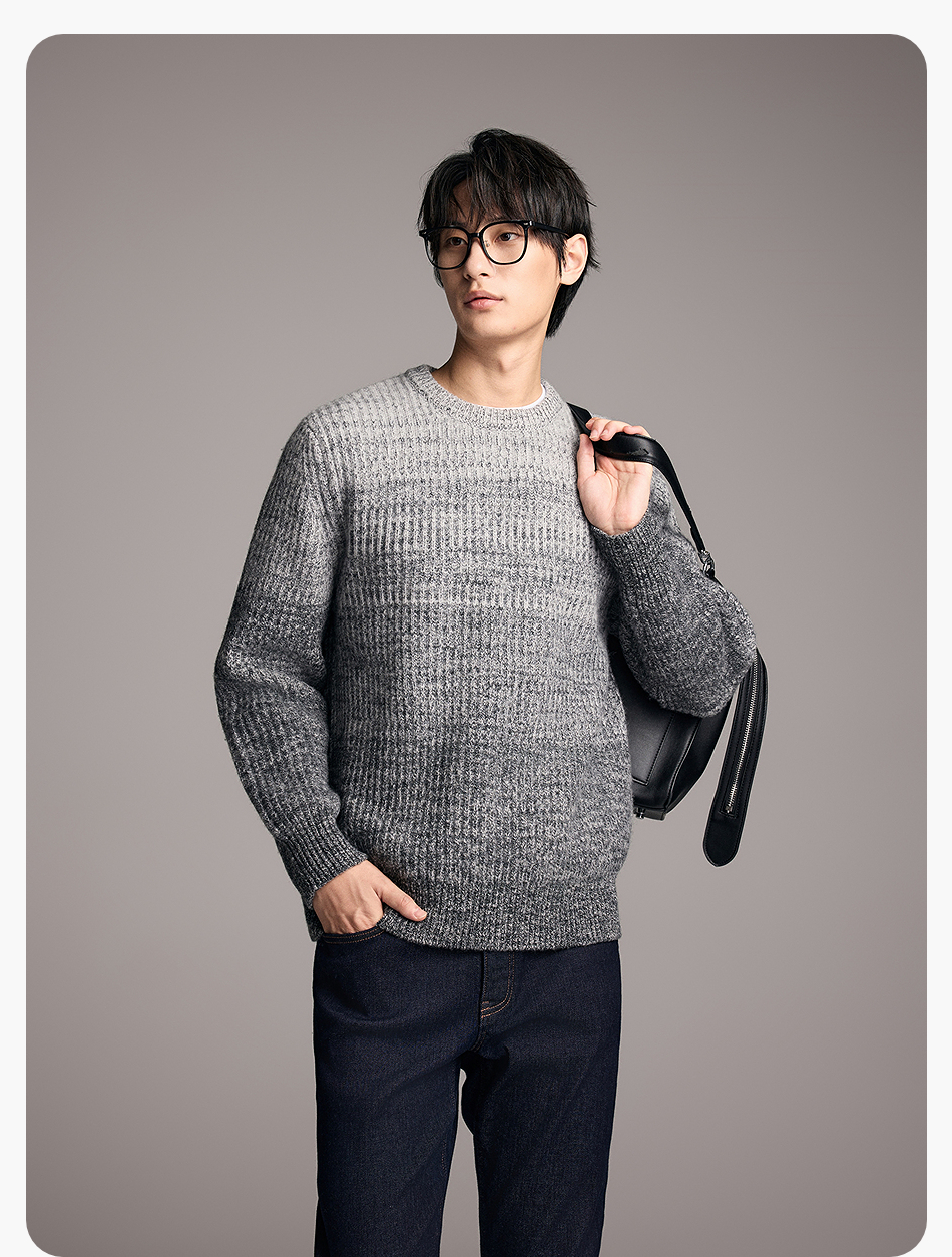 棉仓356826004-宽松渐变全羊毛圆领毛衣