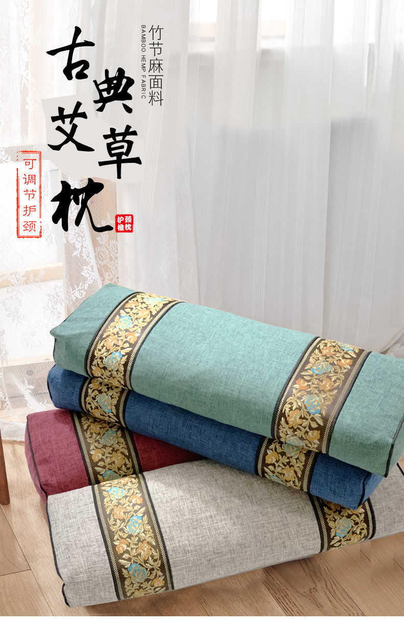 艾草枕头护颈枕高枕中式复古仿古宫廷养生睡眠护颈椎方枕单人枕芯