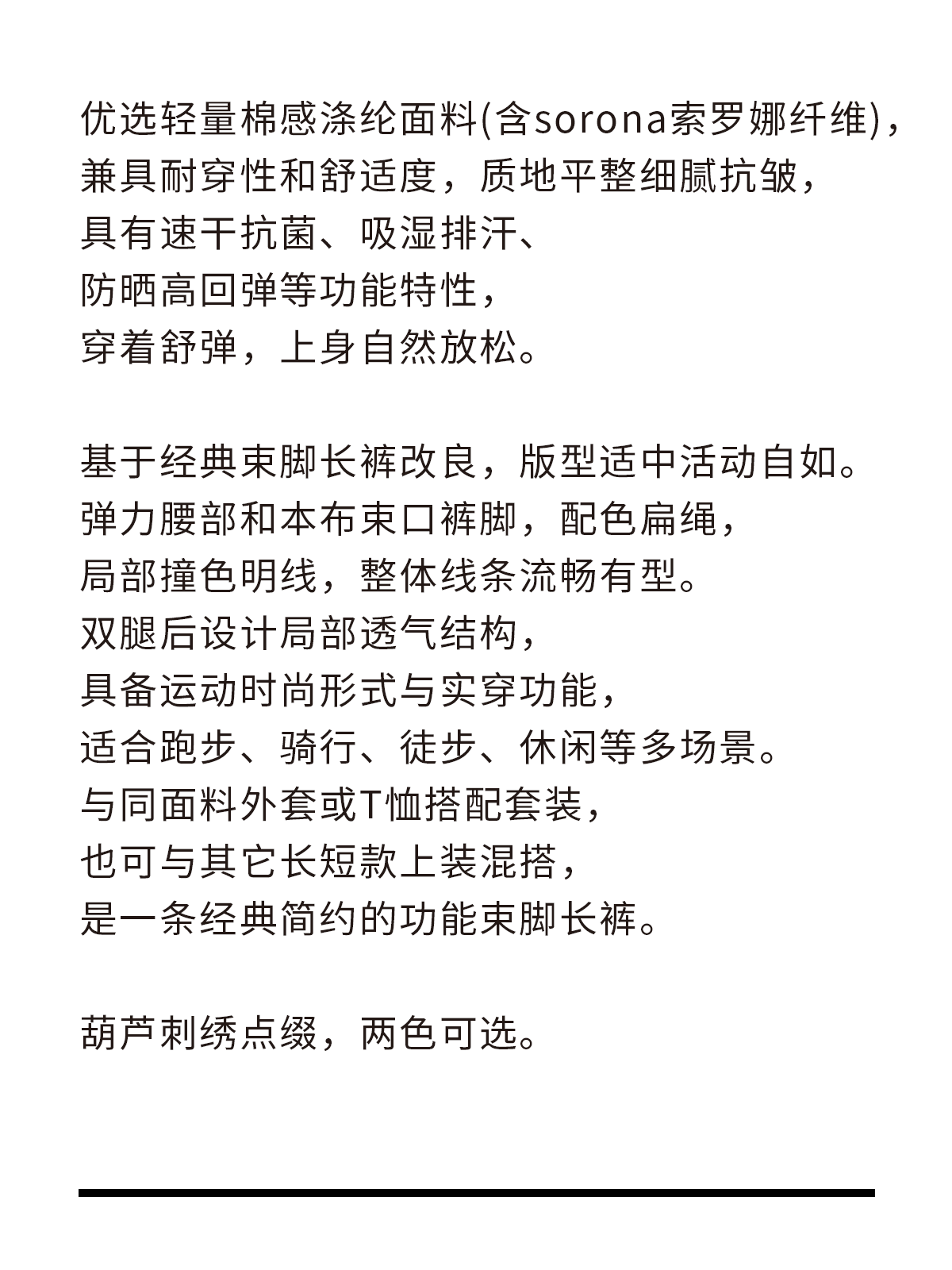 吃茶去chichaqu25明线速干吸湿排汗棉感防晒轻量束脚长裤运动户外