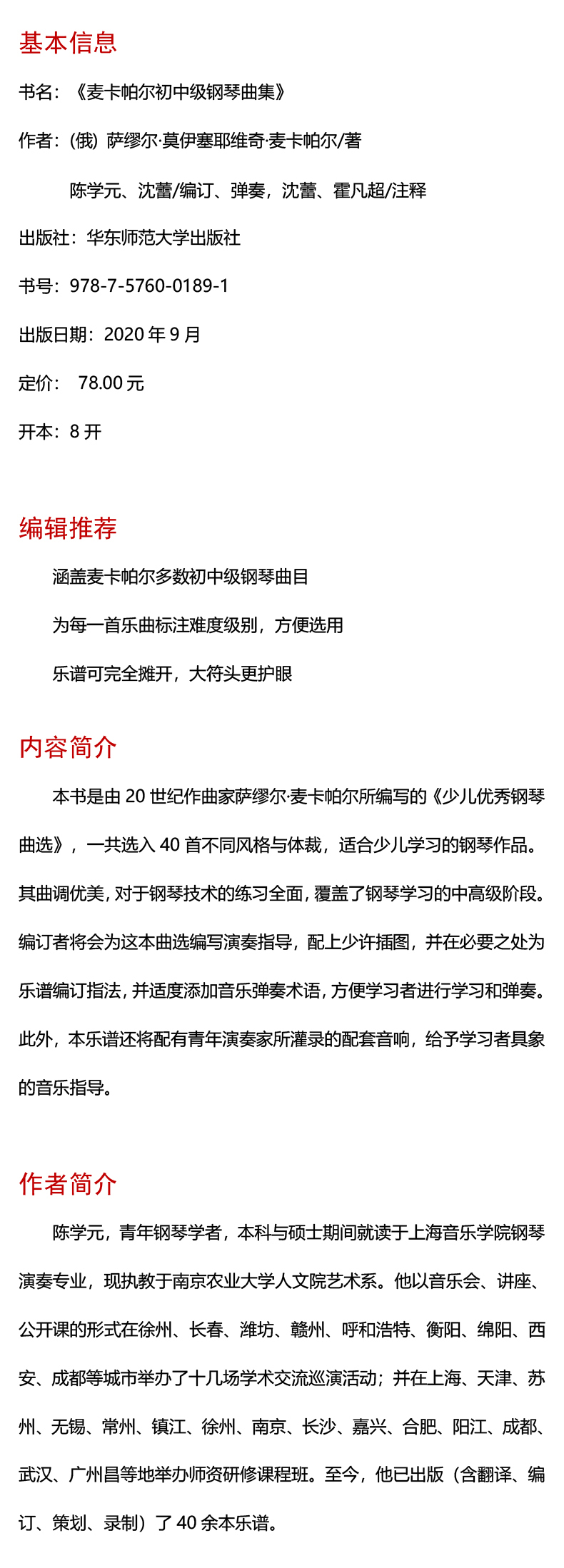 麦卡帕尔初中级钢琴曲集 音悦人生 钢琴教学系列乐谱 适合1-8级或同等程度使用 少儿钢琴曲 正版 华东师范大学出版社