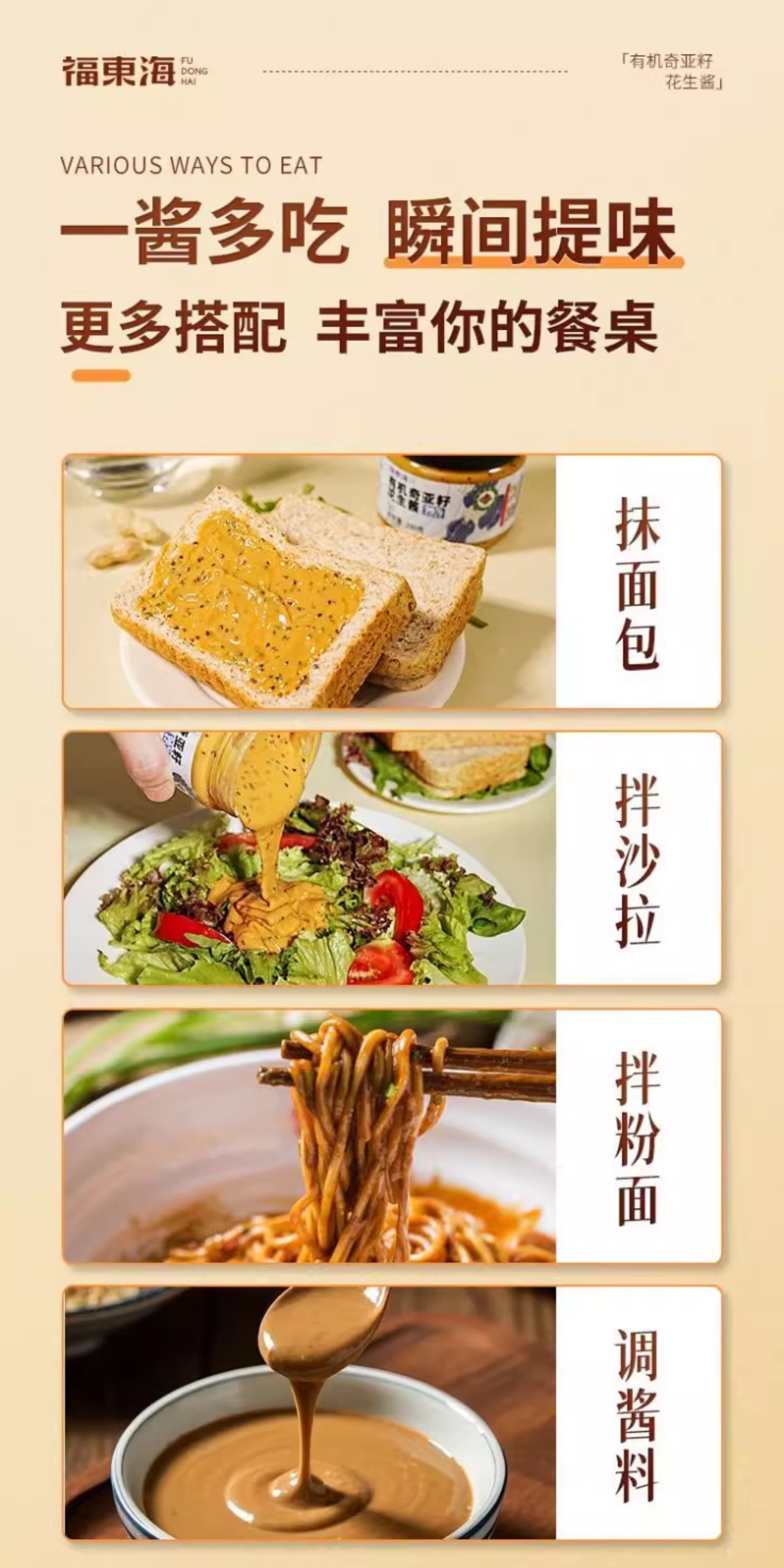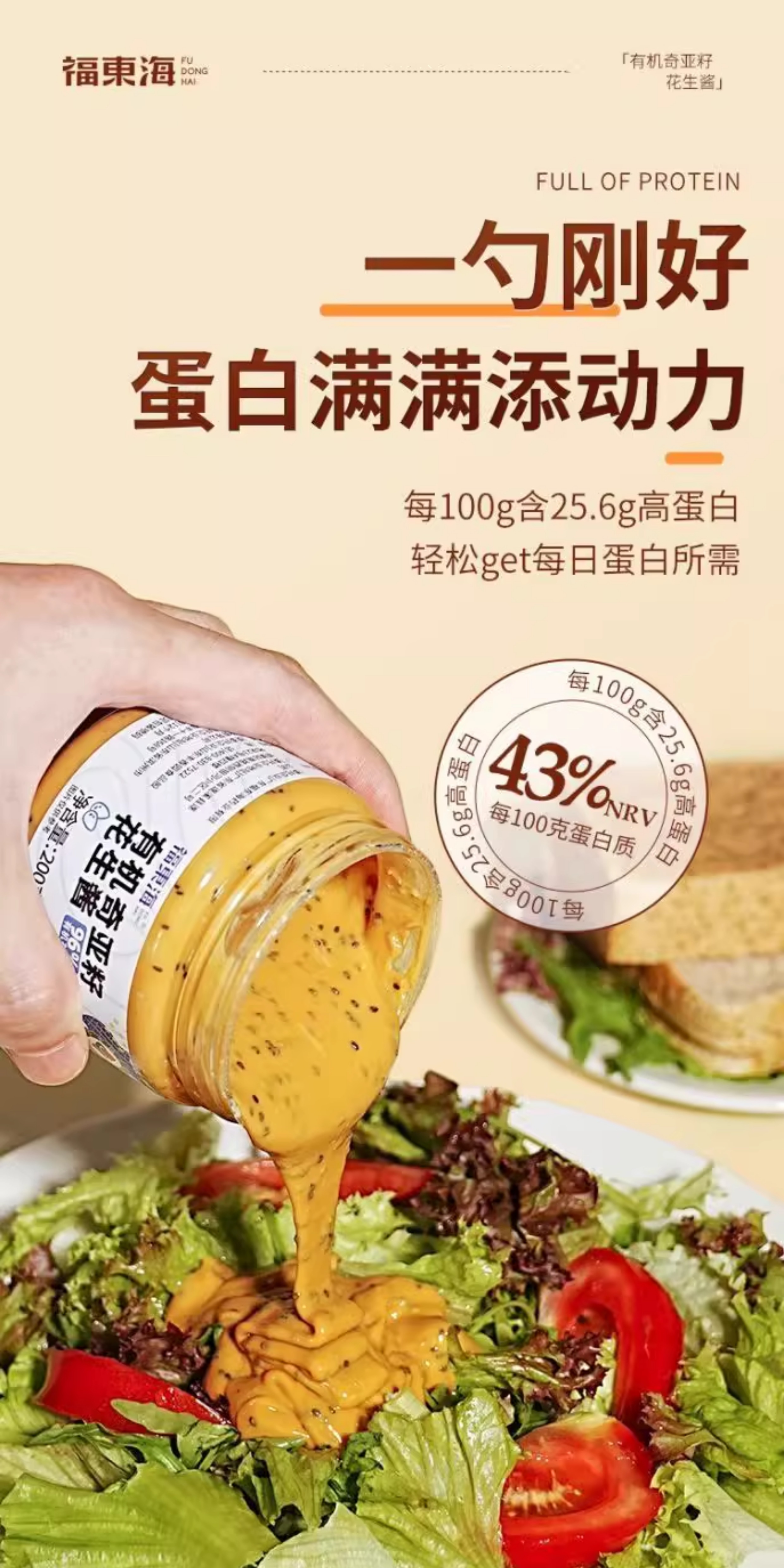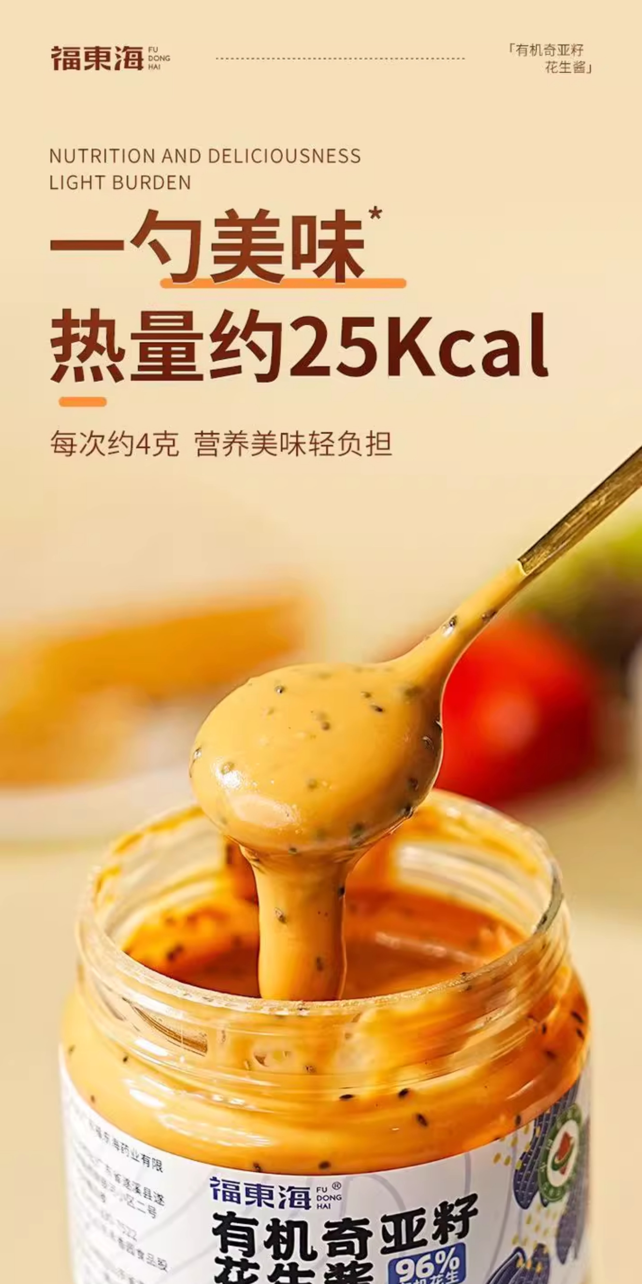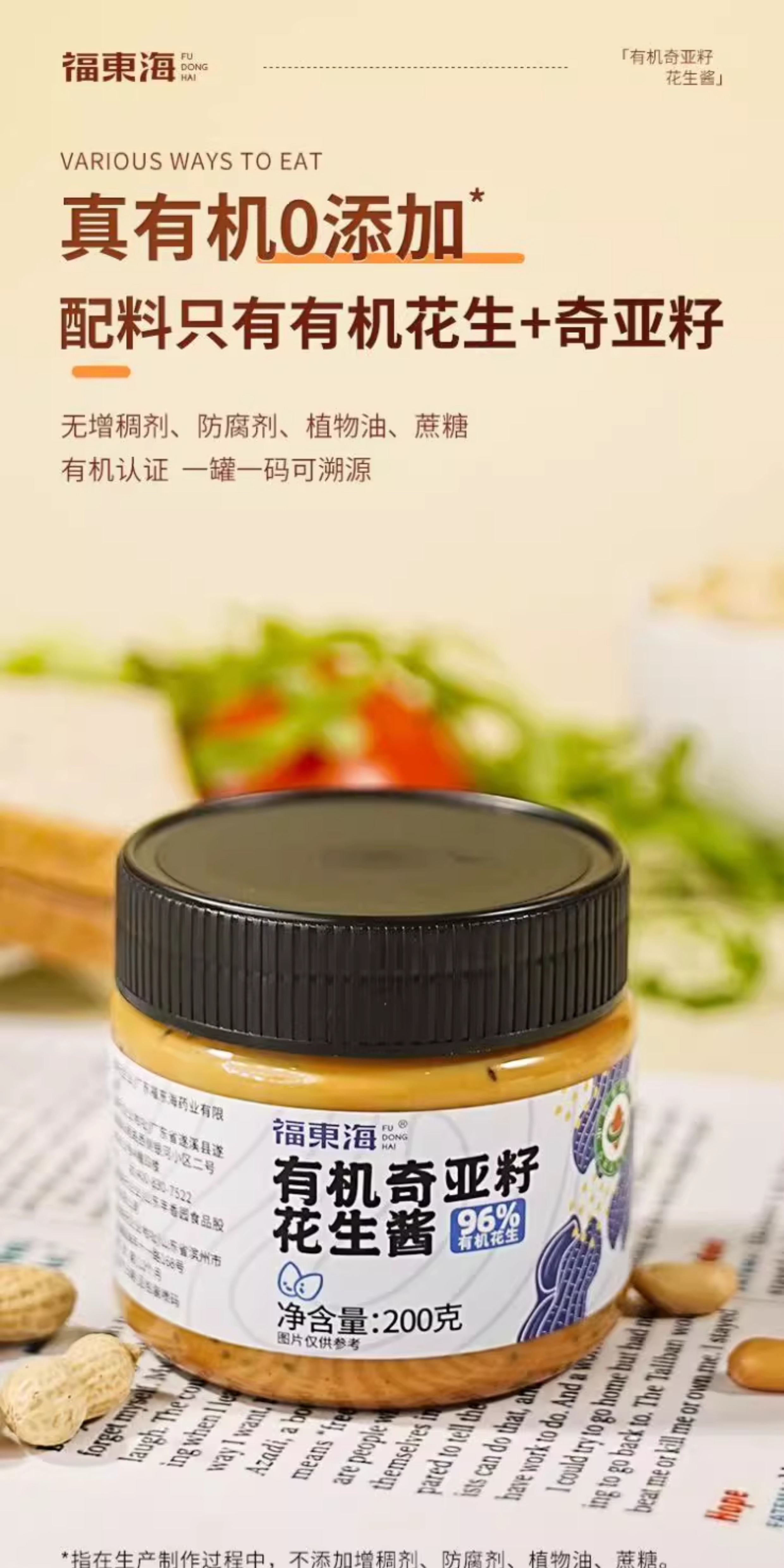 福东海有机奇亚籽花生酱200g营养健康早餐健身面包拌酱其他药食