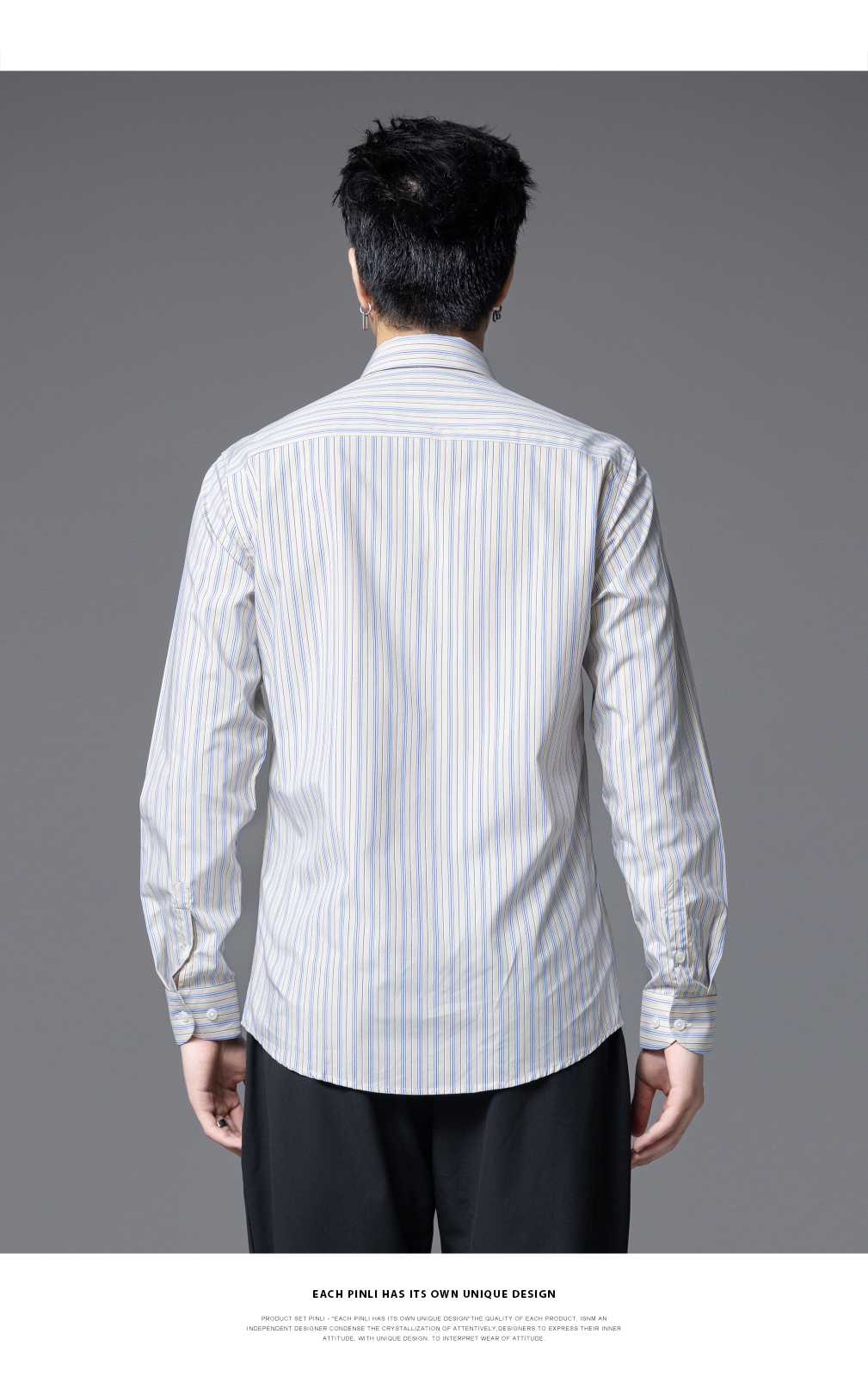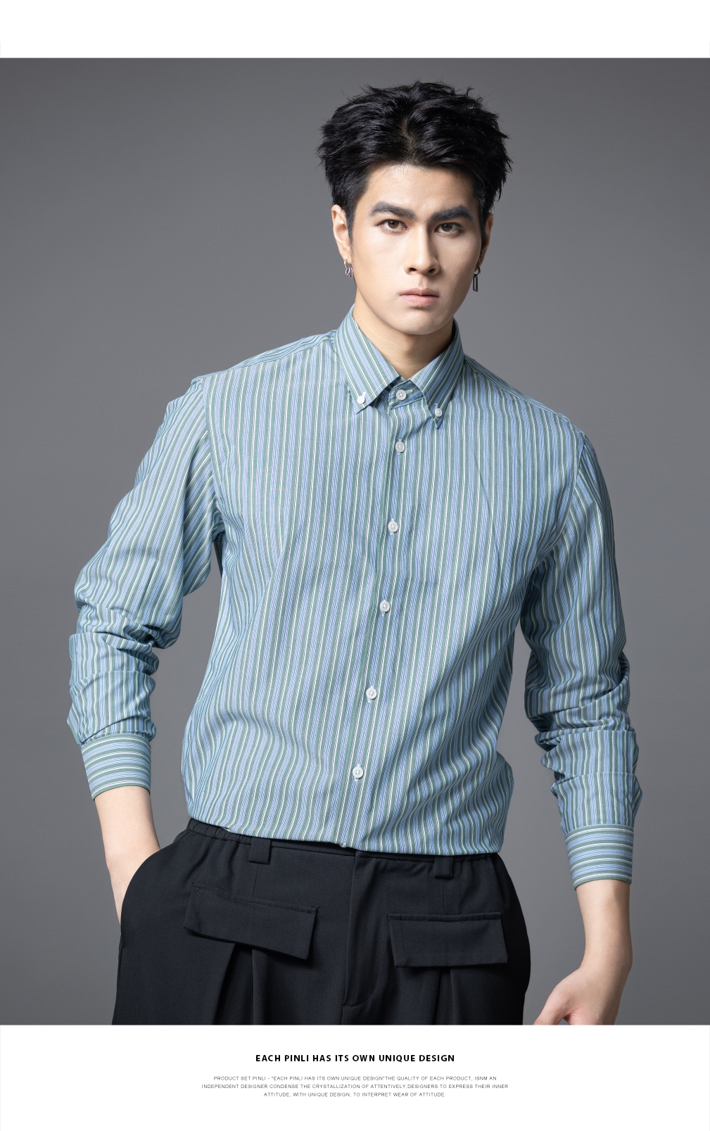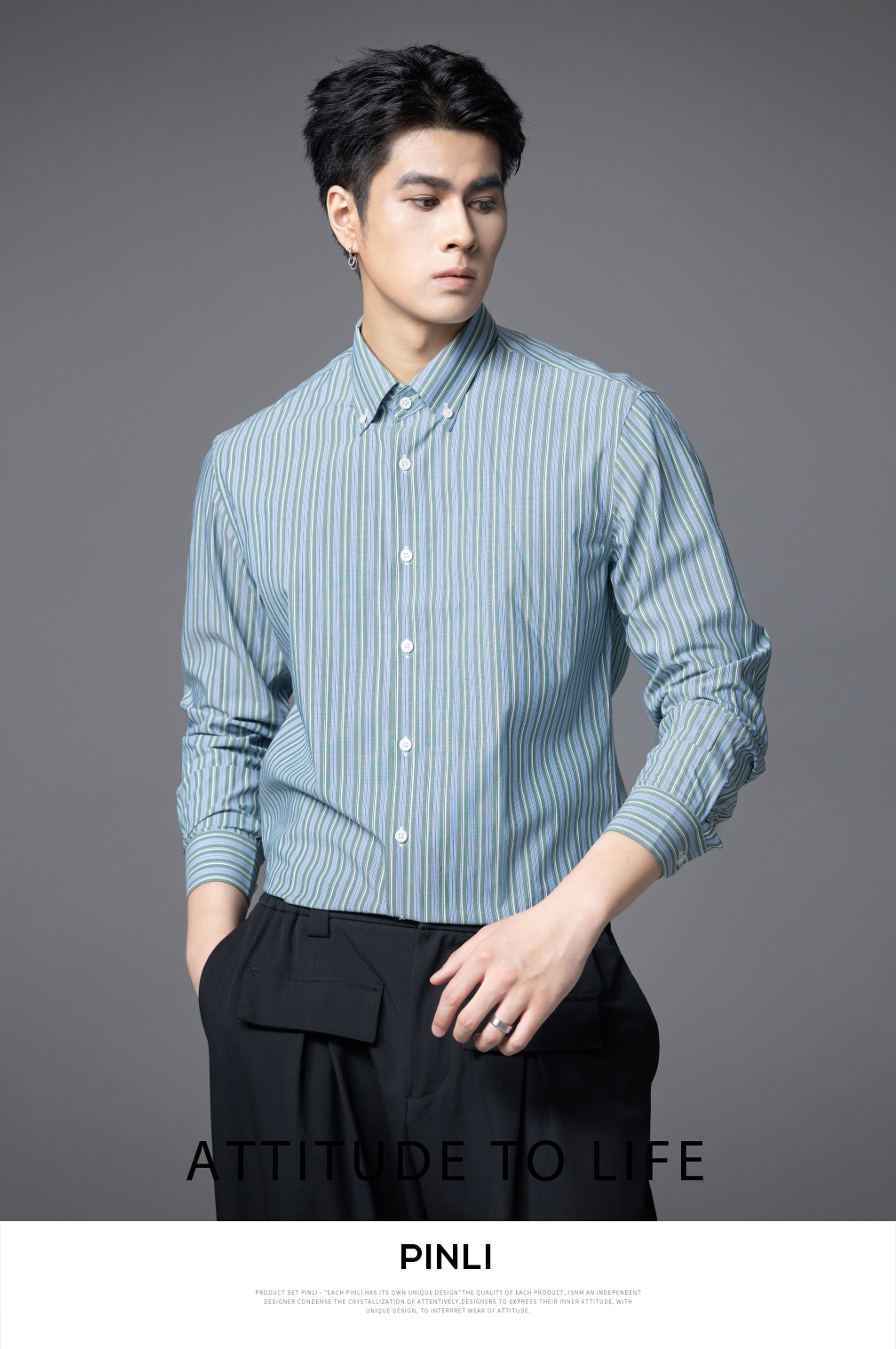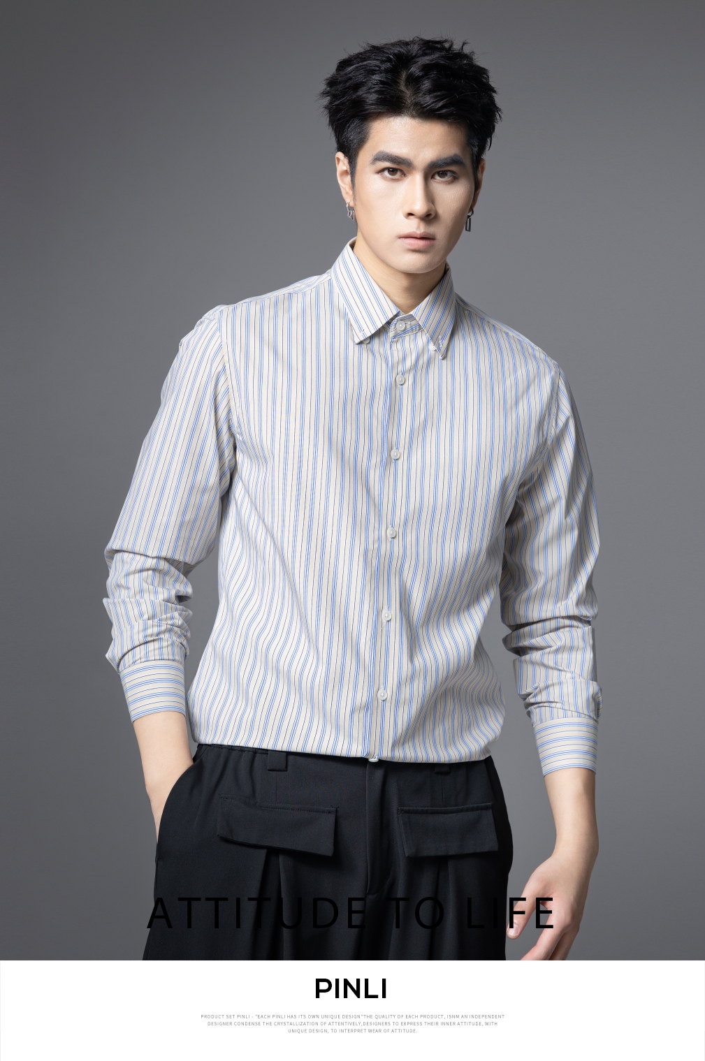 PINLI品立2025秋季新款莫代尔条纹衬衫男士免烫休闲商务长袖衬衣GD253113053