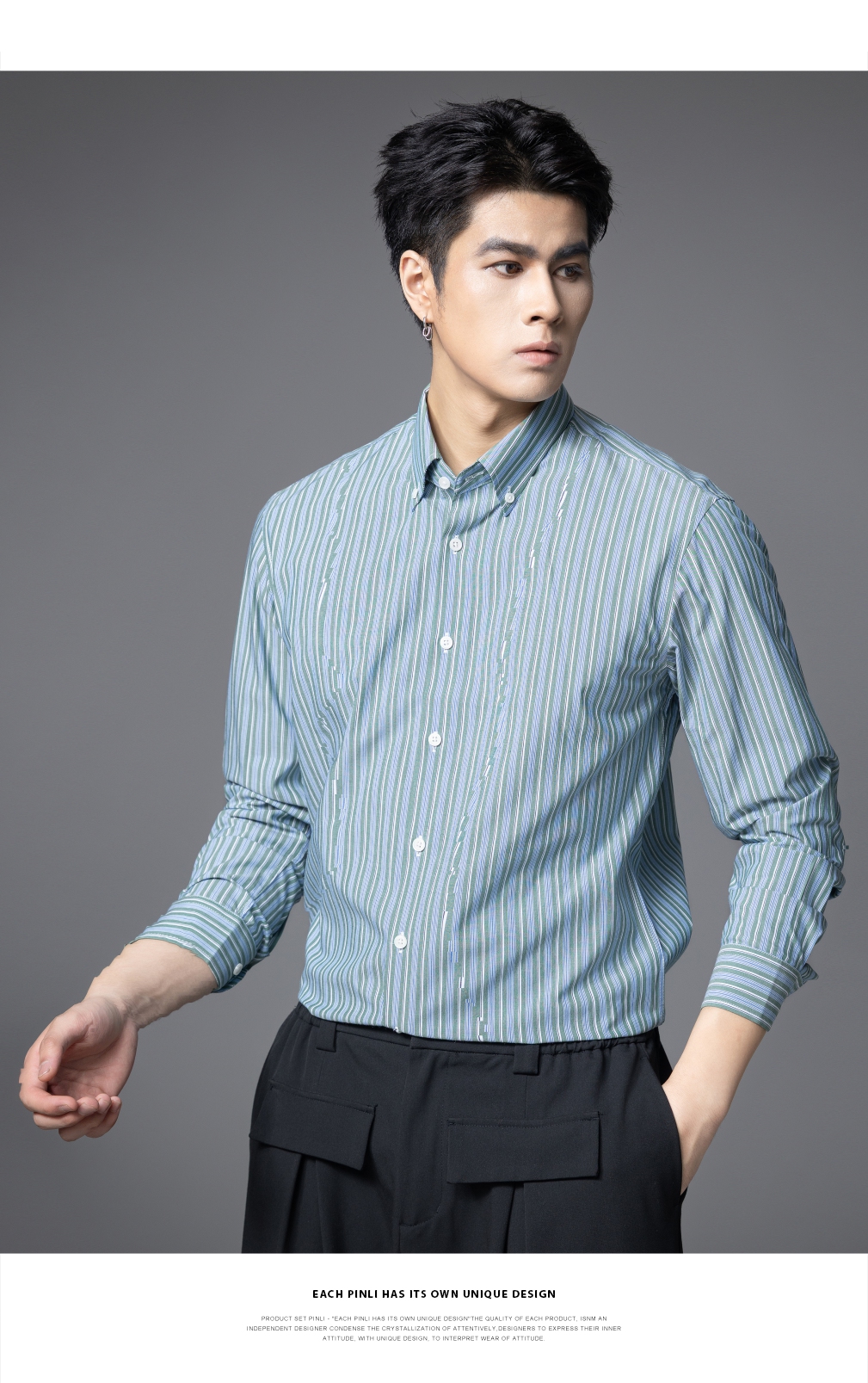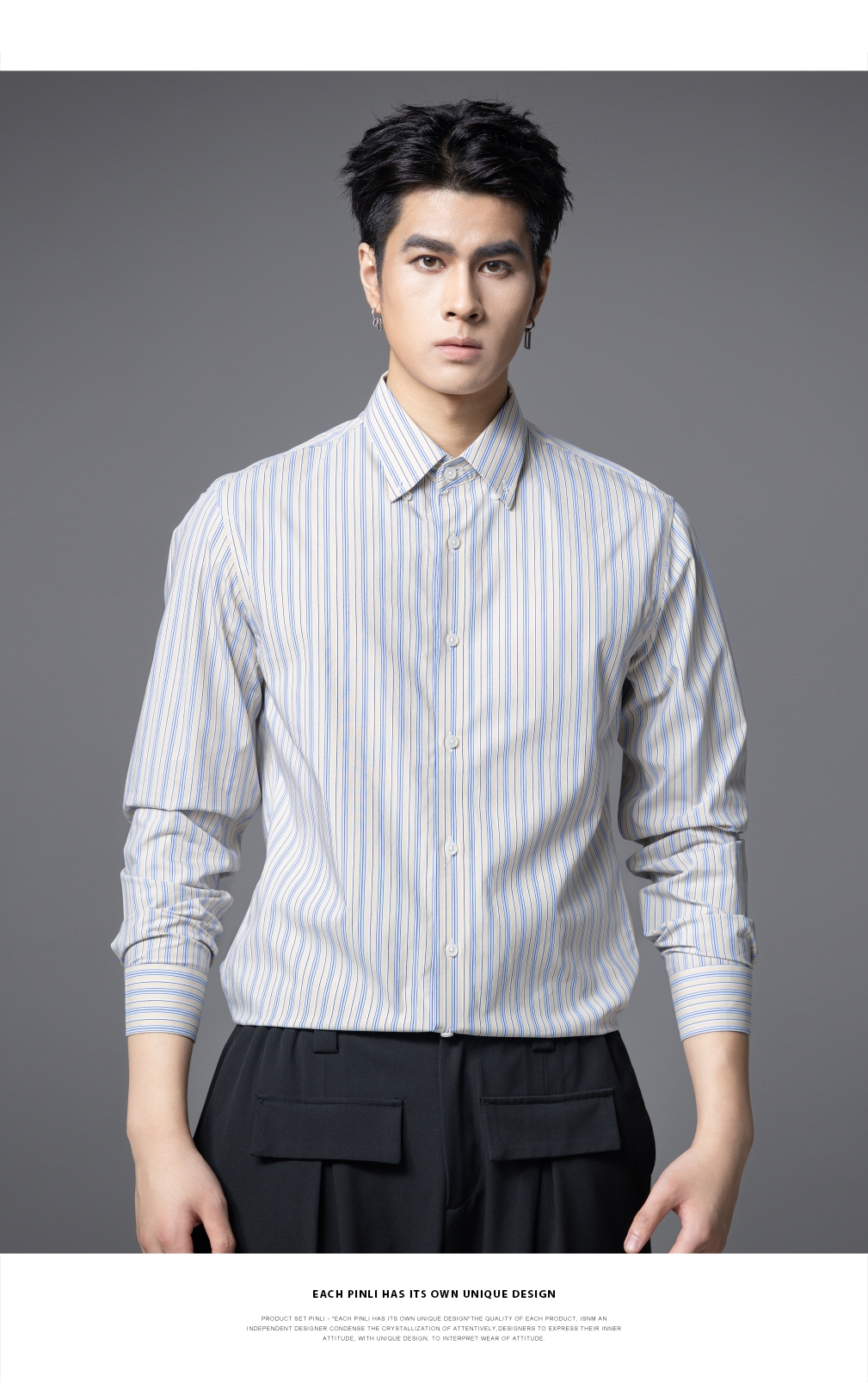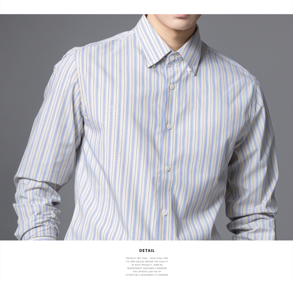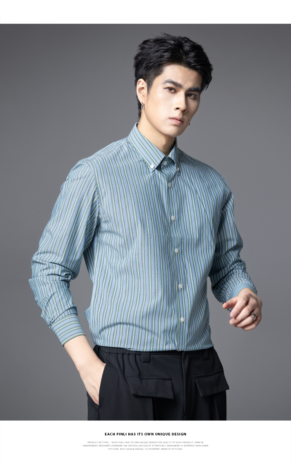PINLI品立2025秋季新款莫代尔条纹衬衫男士免烫休闲商务长袖衬衣GD253113053