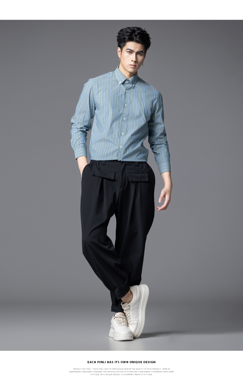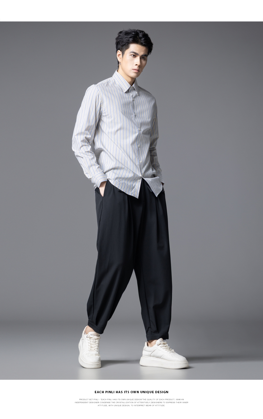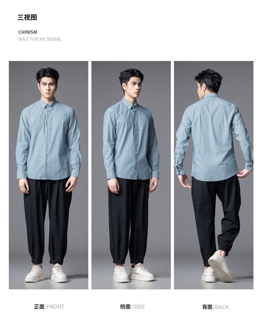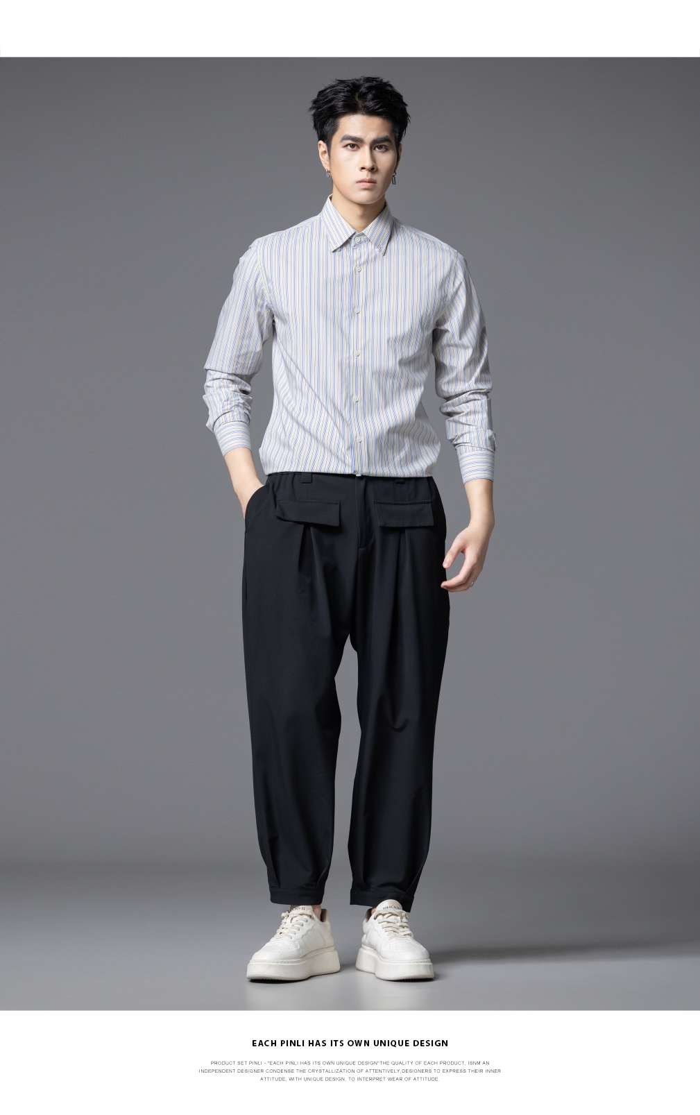 PINLI品立2025秋季新款莫代尔条纹衬衫男士免烫休闲商务长袖衬衣GD253113053