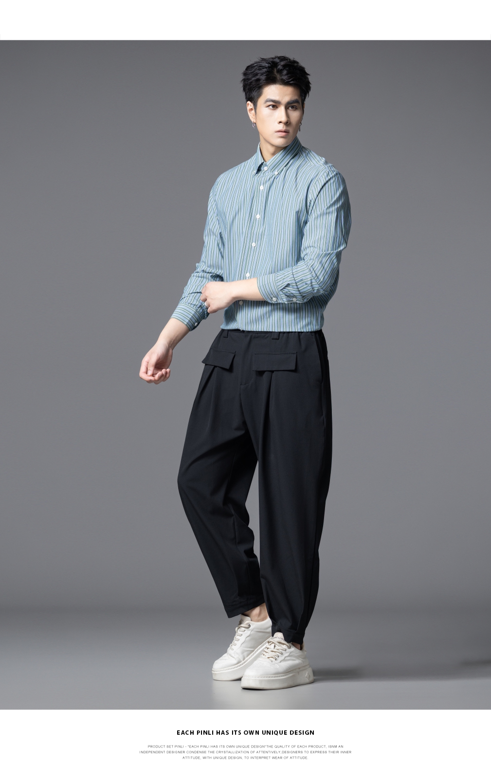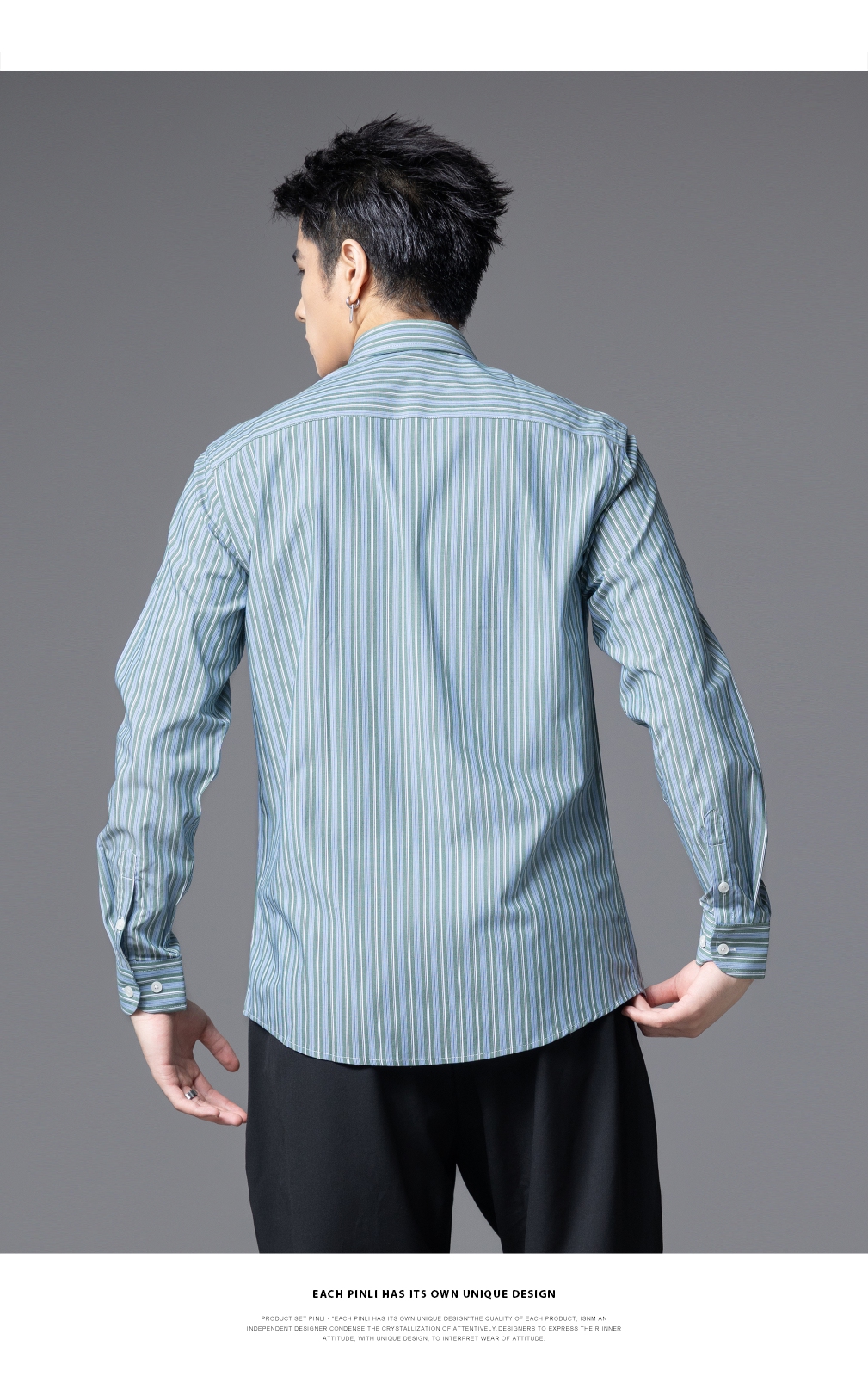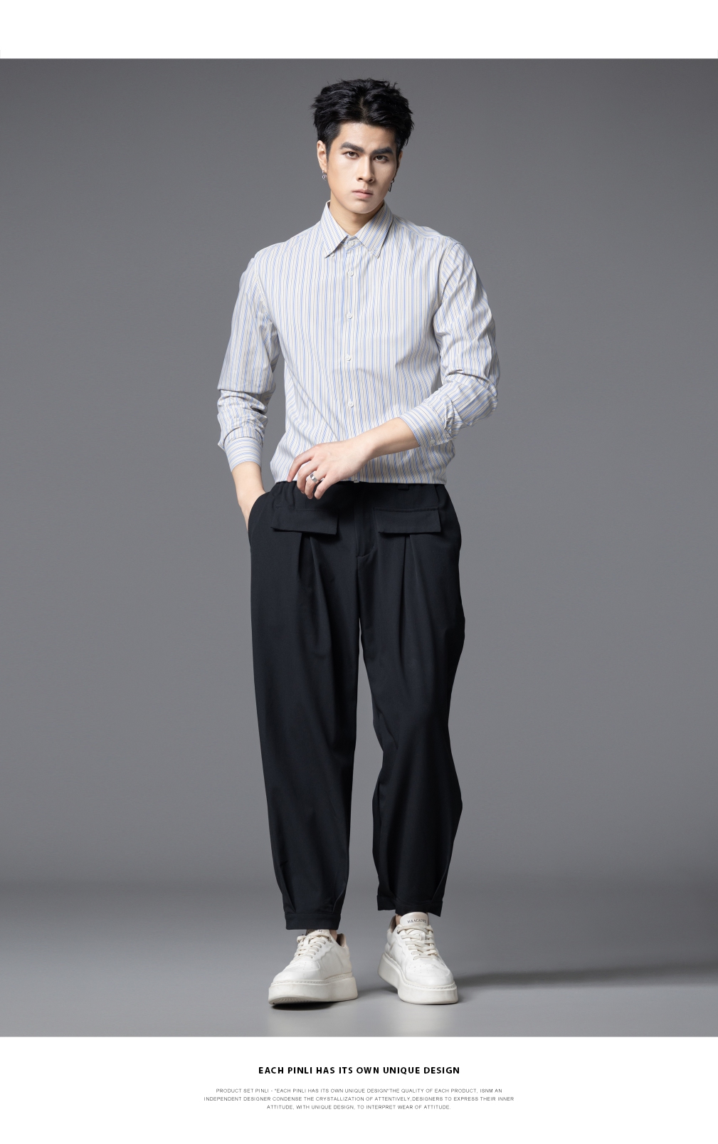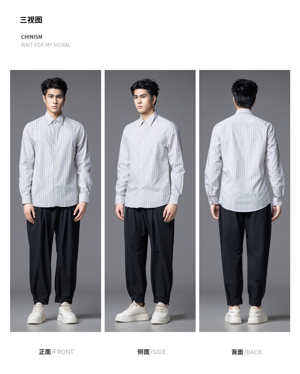 PINLI品立2025秋季新款莫代尔条纹衬衫男士免烫休闲商务长袖衬衣GD253113053