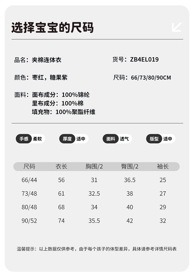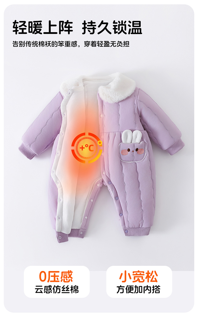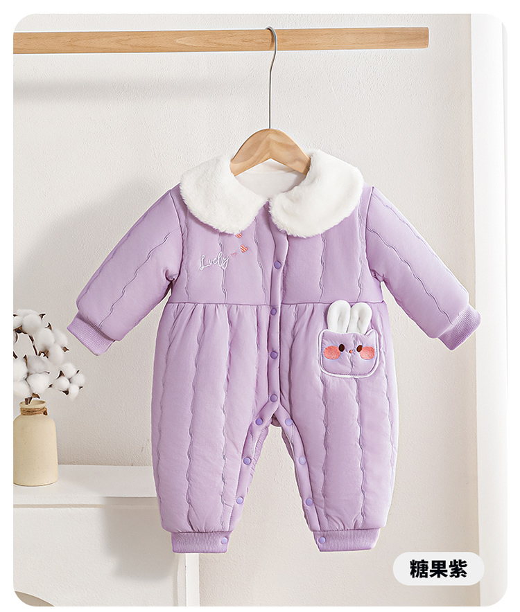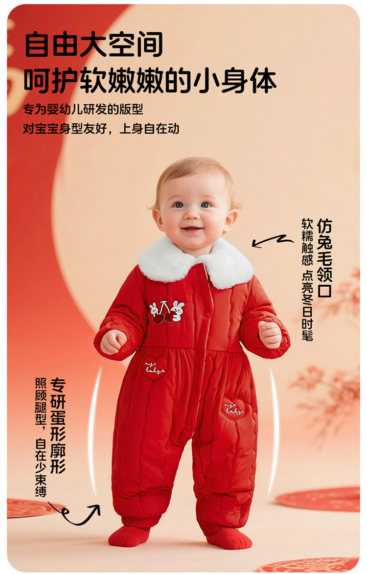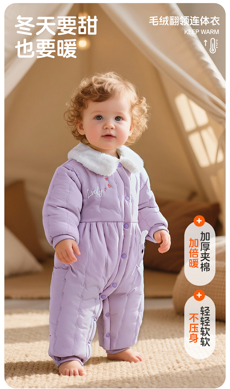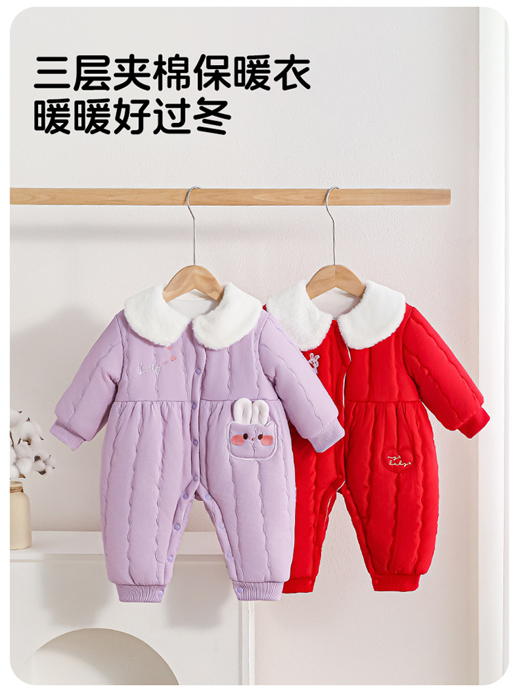 贝贝怡夹棉保暖连体衣25秋冬新年女童夹棉加厚哈衣防风保暖连体衣爬爬服ZB4EL019