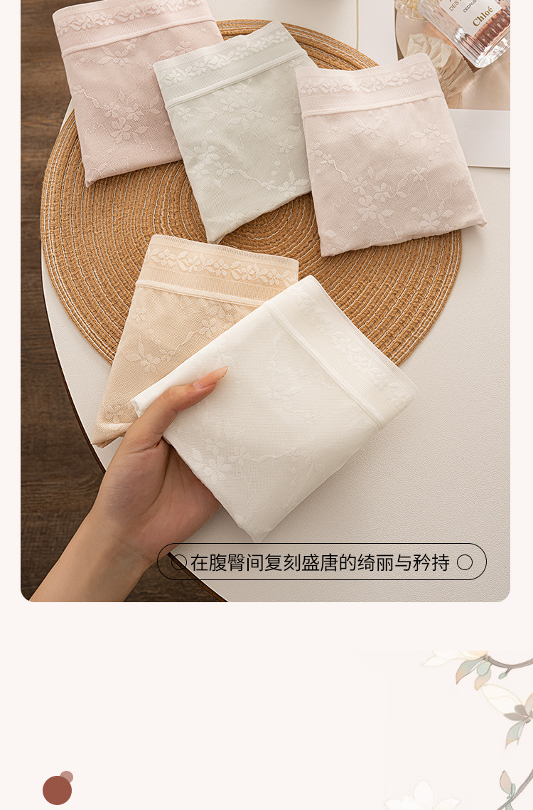 【品名】【超值5条装】蔓朵奇 10A抑菌 国风提花蕾丝内裤 中腰透气 提臀女士内裤 【规格】西柚粉+小麦肤+初春绿+珊瑚粉+奶油白 【产地】国内 【材质】 面料:锦纶82% 氨纶18% 里料:棉95% 氨纶5% 【发货包装】独立包装 【发货地】广东 【发货快递】韵达 【不发货区域】新疆、西藏、港澳台 【发货时效】48-72小时,周末节假日顺延 【特别提醒】因产品属于贴身衣物,非质量问题,拆封后是不支持退换的,敬请谅解~ |