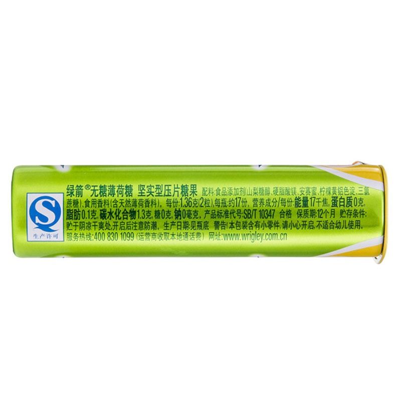 绿箭 无糖薄荷糖(冰柠薄荷味)23.8g/盒