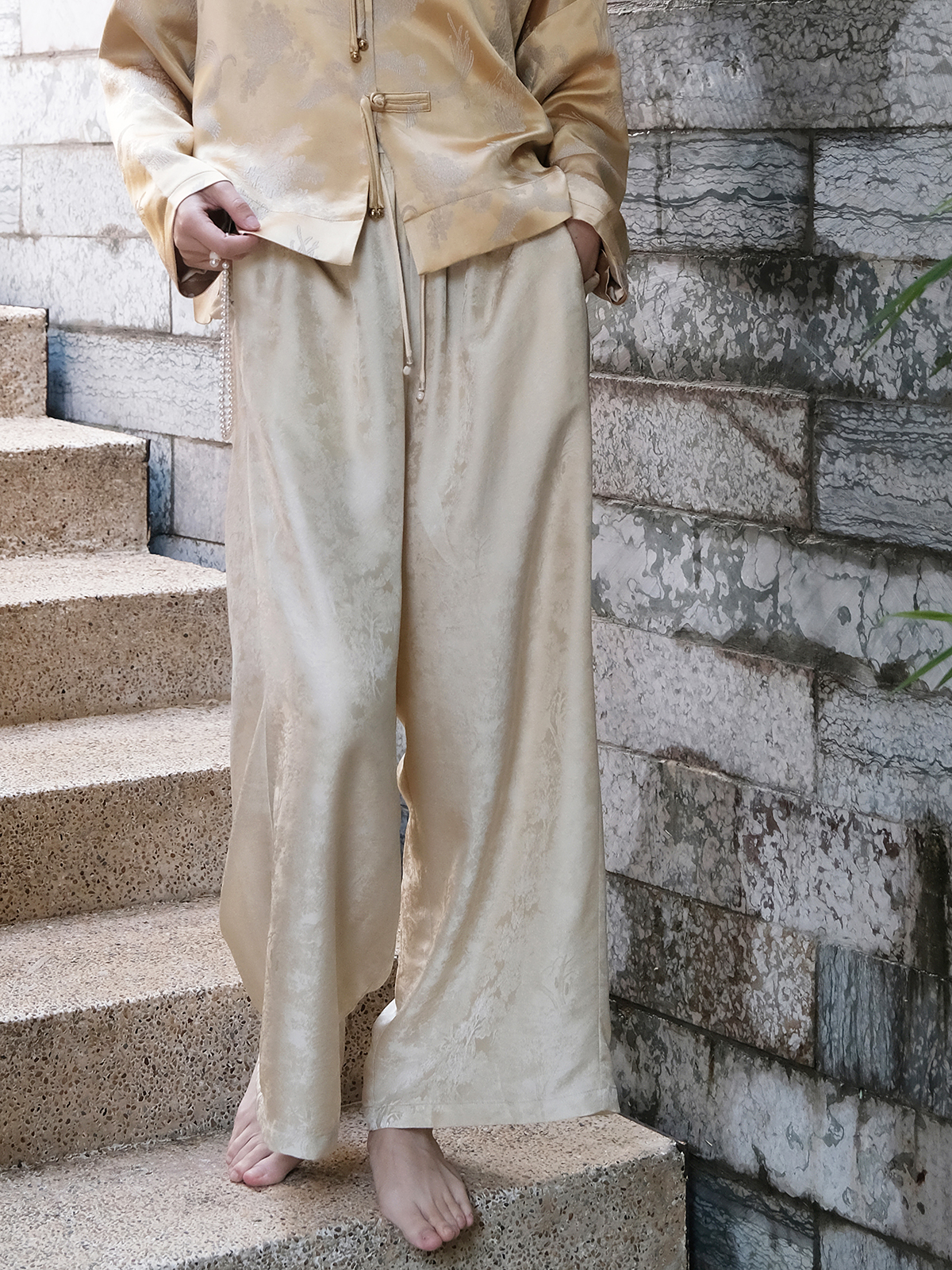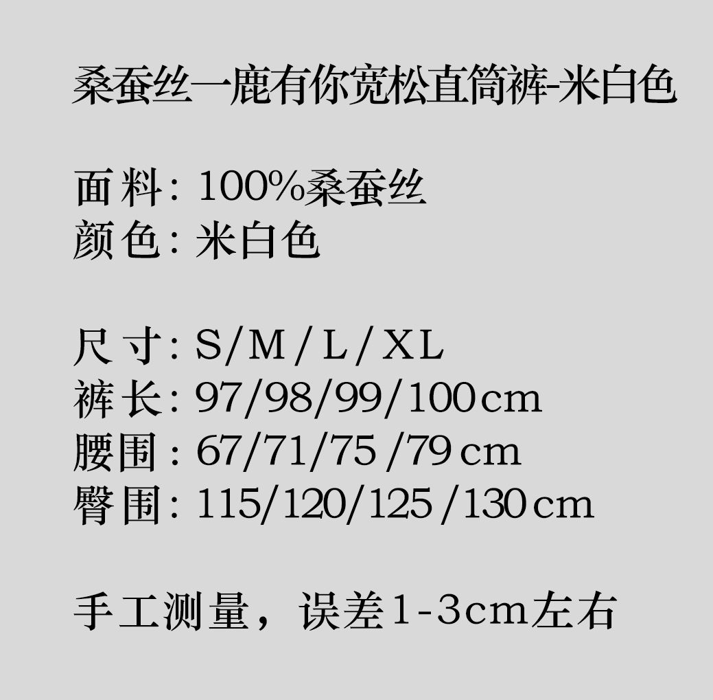 盛唐婧 |桑蚕丝一鹿有你宽松直筒裤-米白色