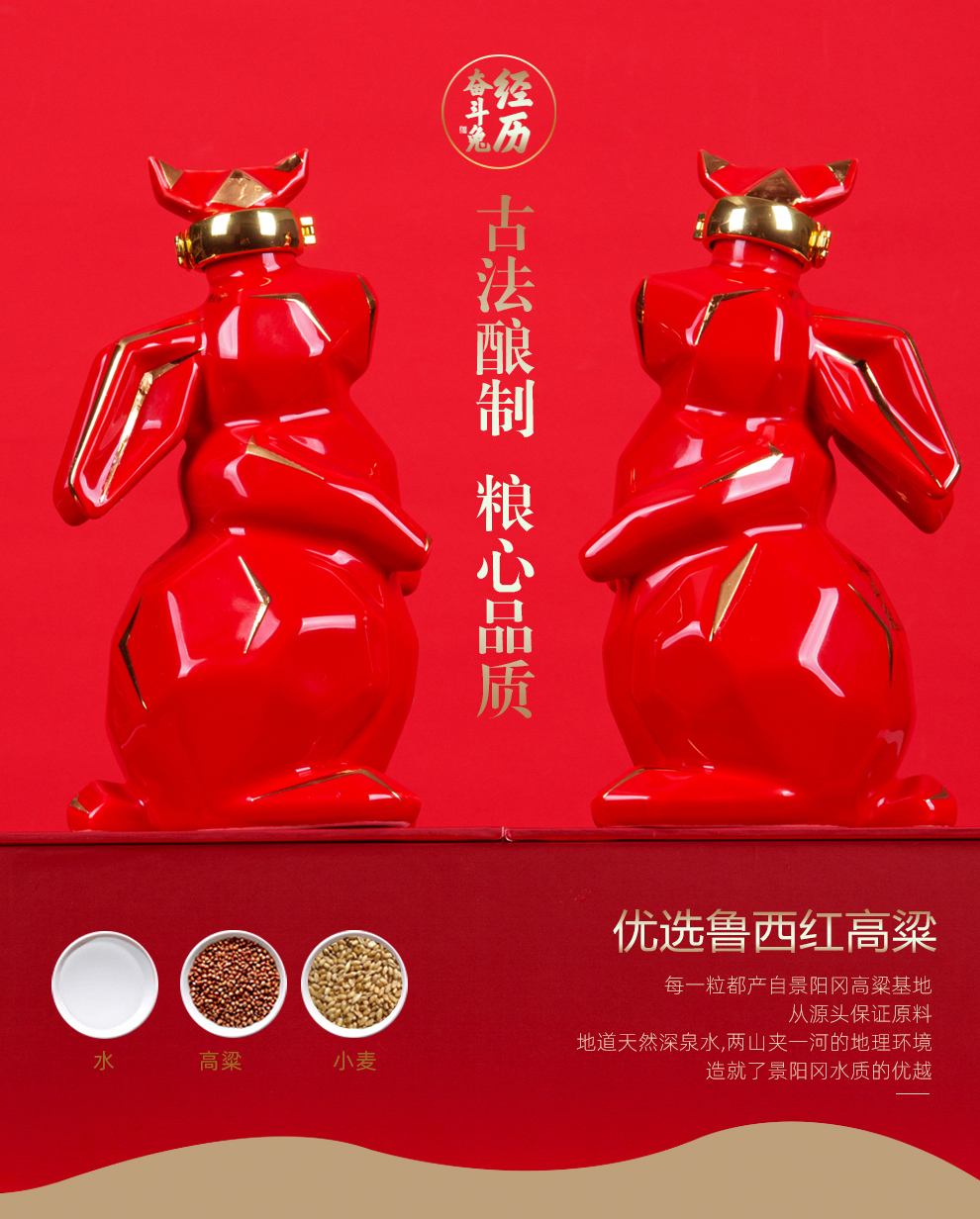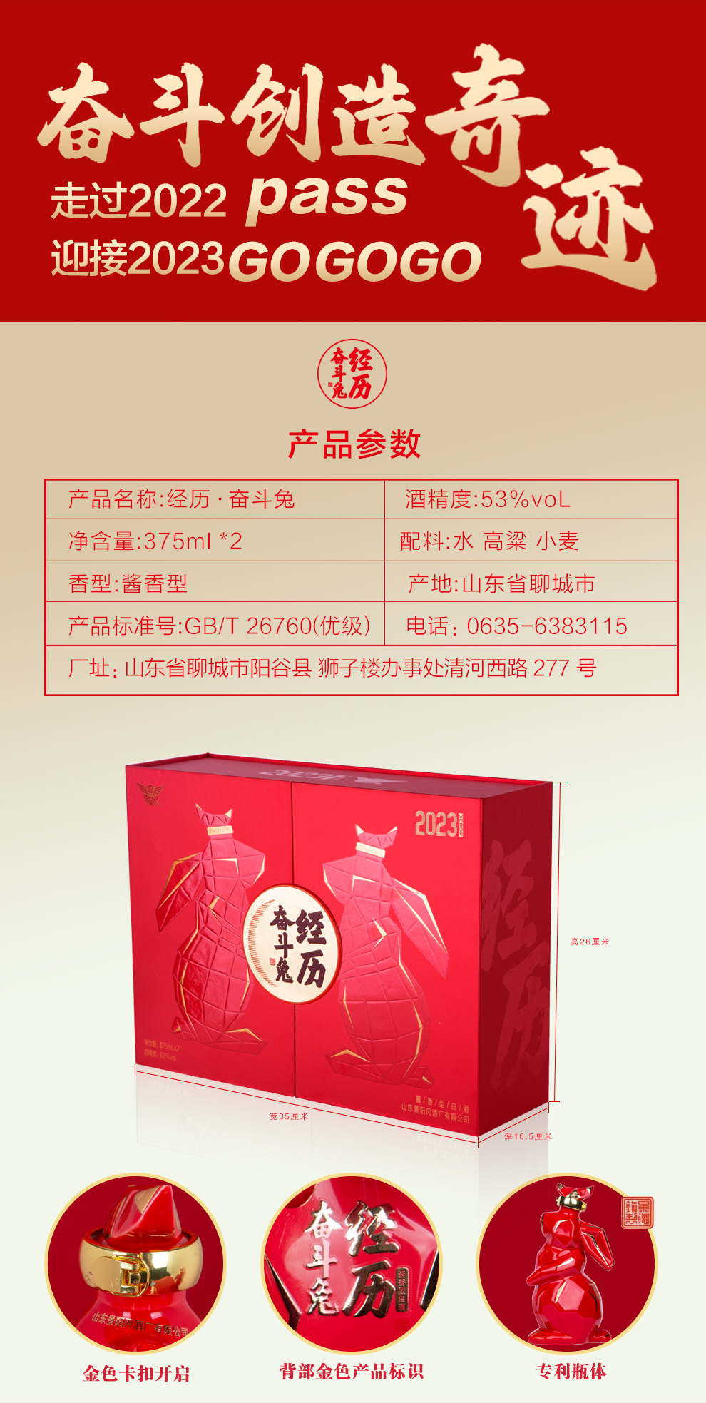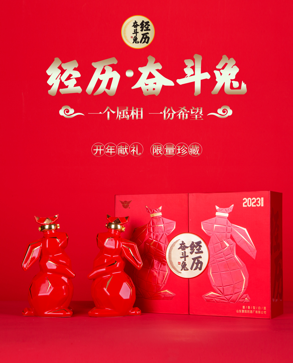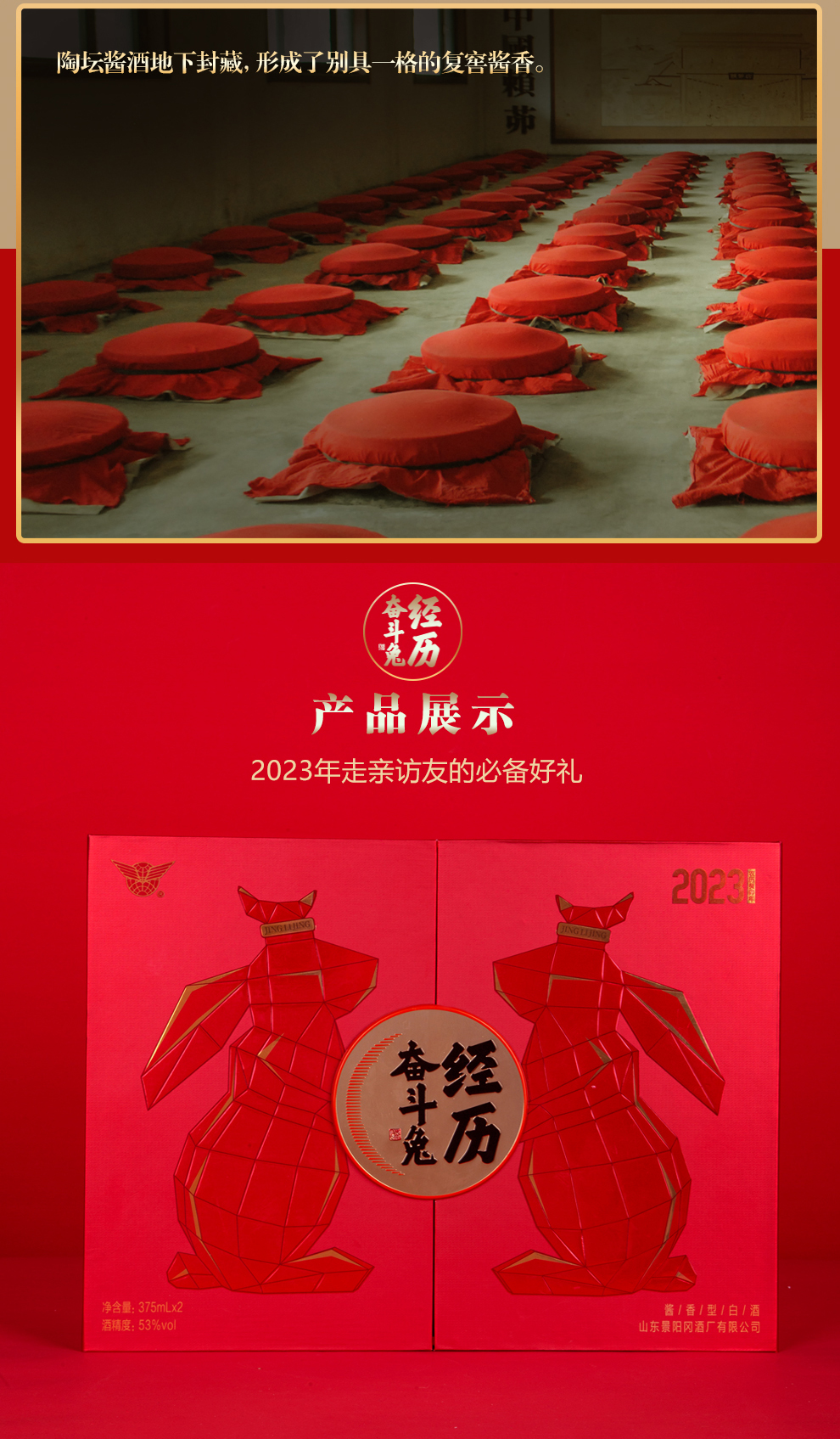 【 送礼佳品 ·酱酒礼盒】景阳冈 53度经历▪奋斗兔酱香型白酒375ml*2瓶礼盒装 2023年生产