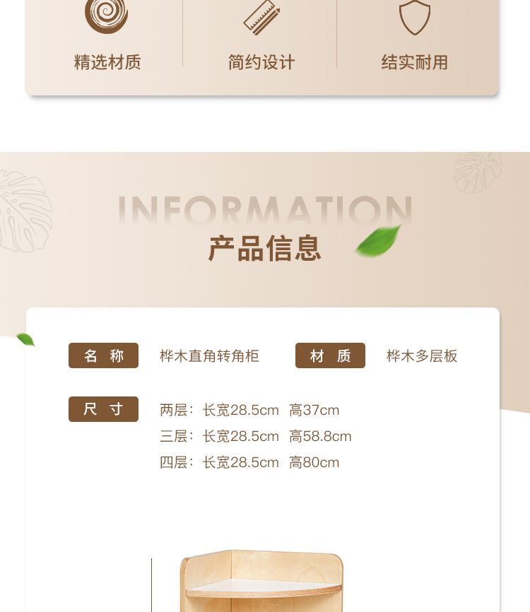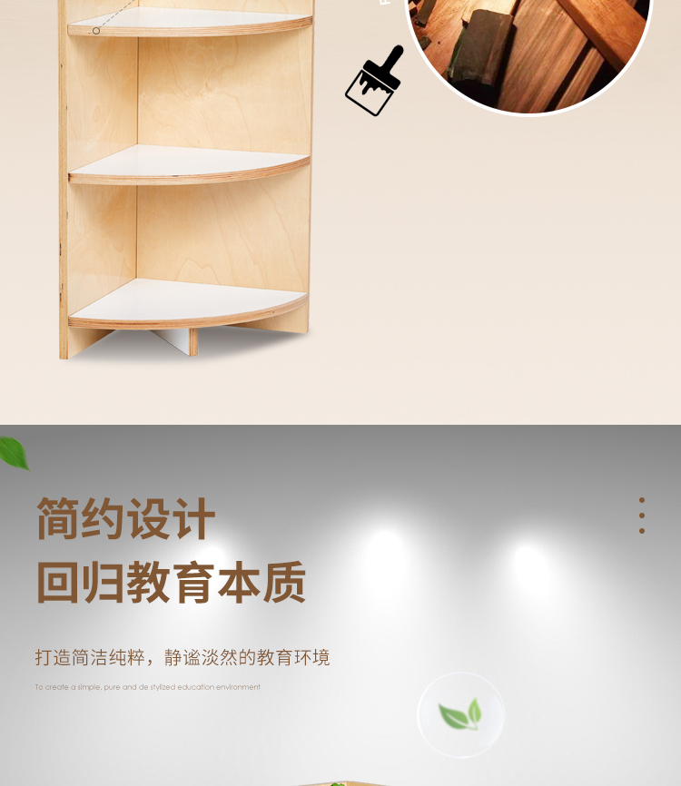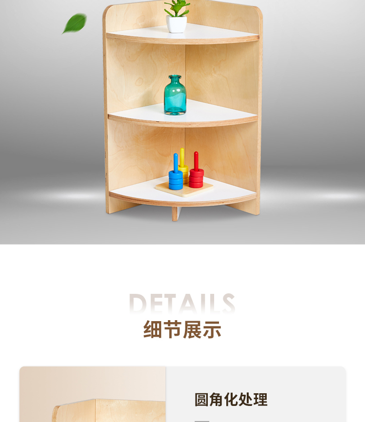 幼儿园家具实木教具转角柜架 蒙氏教具 桦木直角转角柜