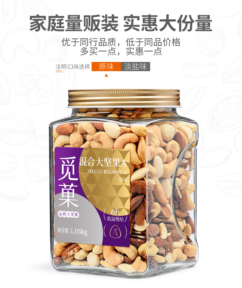 觅菓大坚果品质混合纯坚果1.05kg干果学生白领孕妇老人健康零食