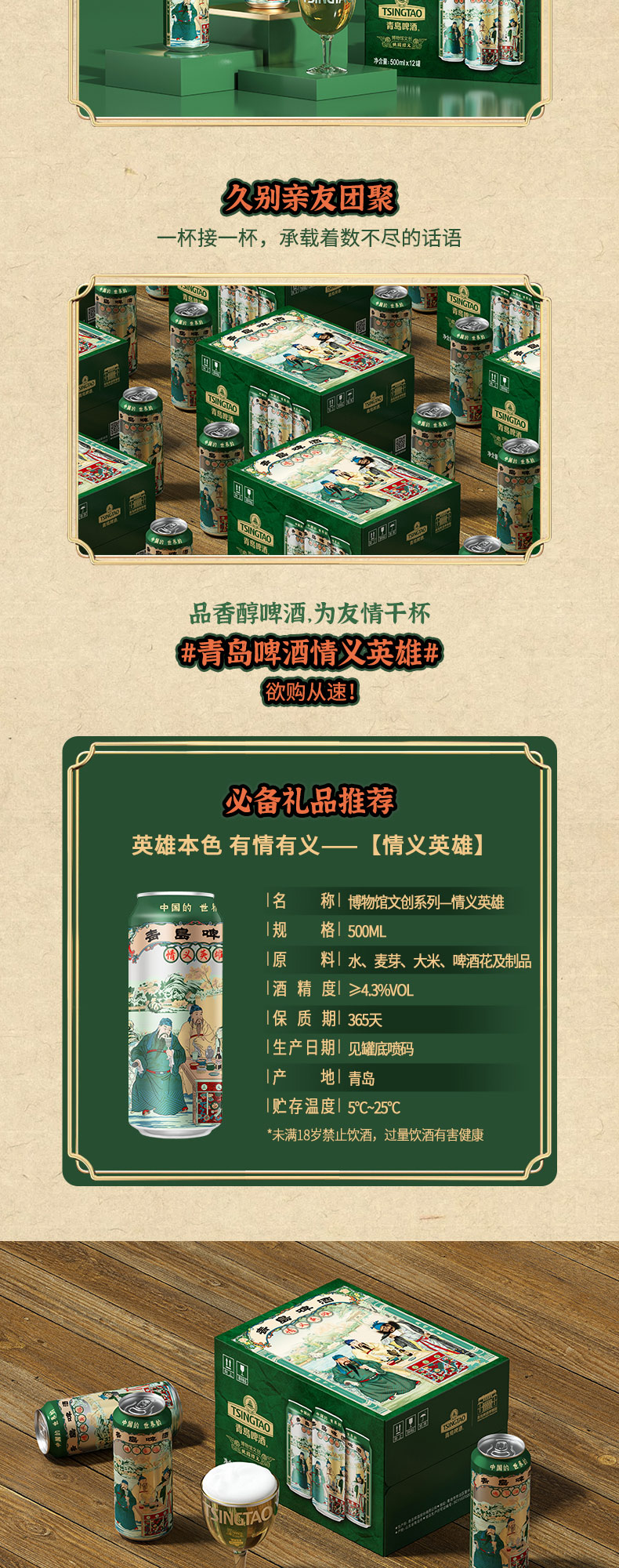 【青岛啤酒博物馆】青岛啤酒 12度情义英雄系列 500ml*12罐啤 文化酒系列