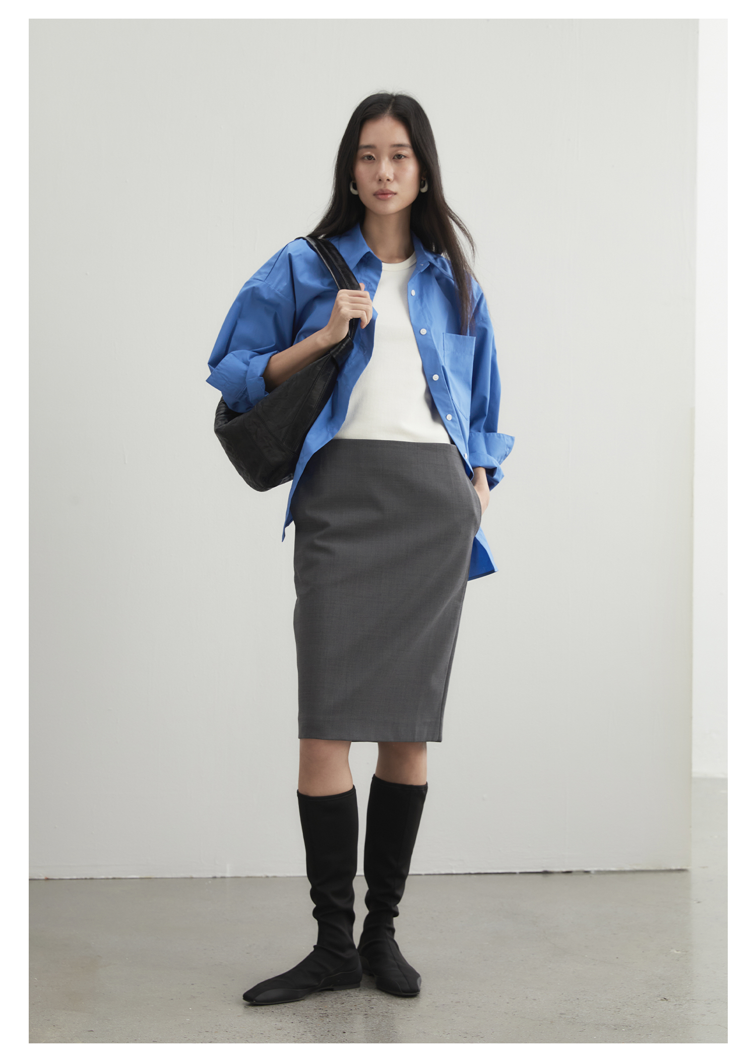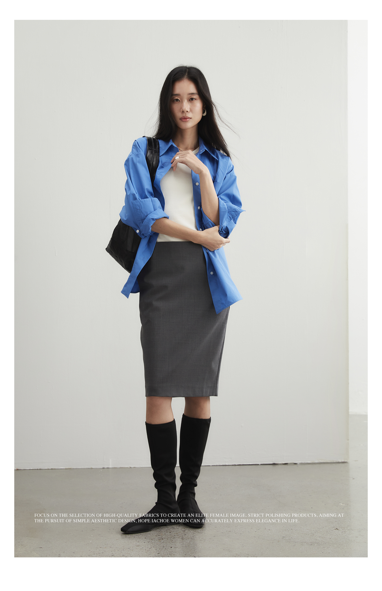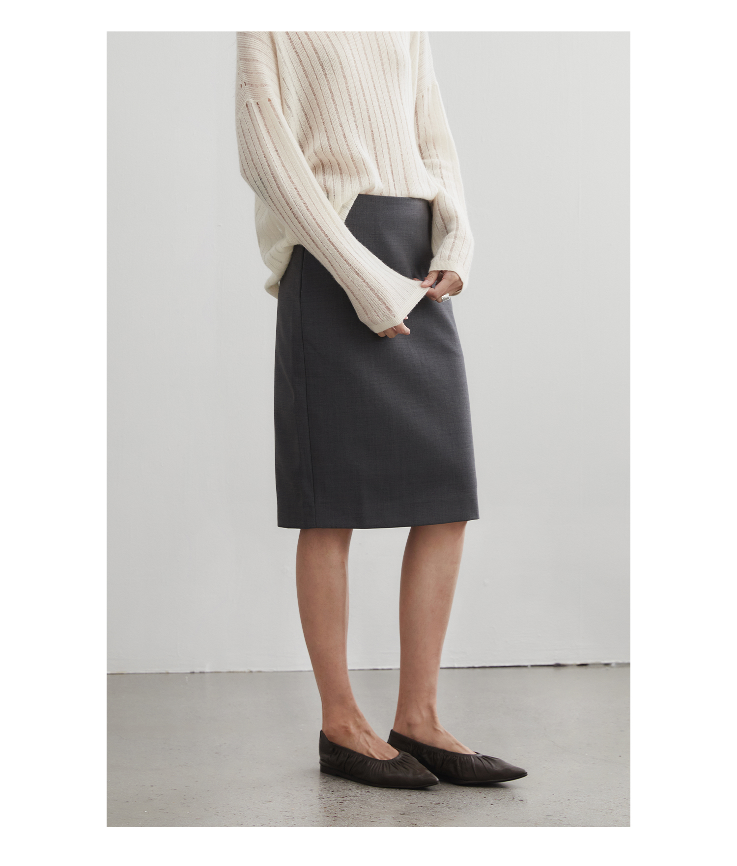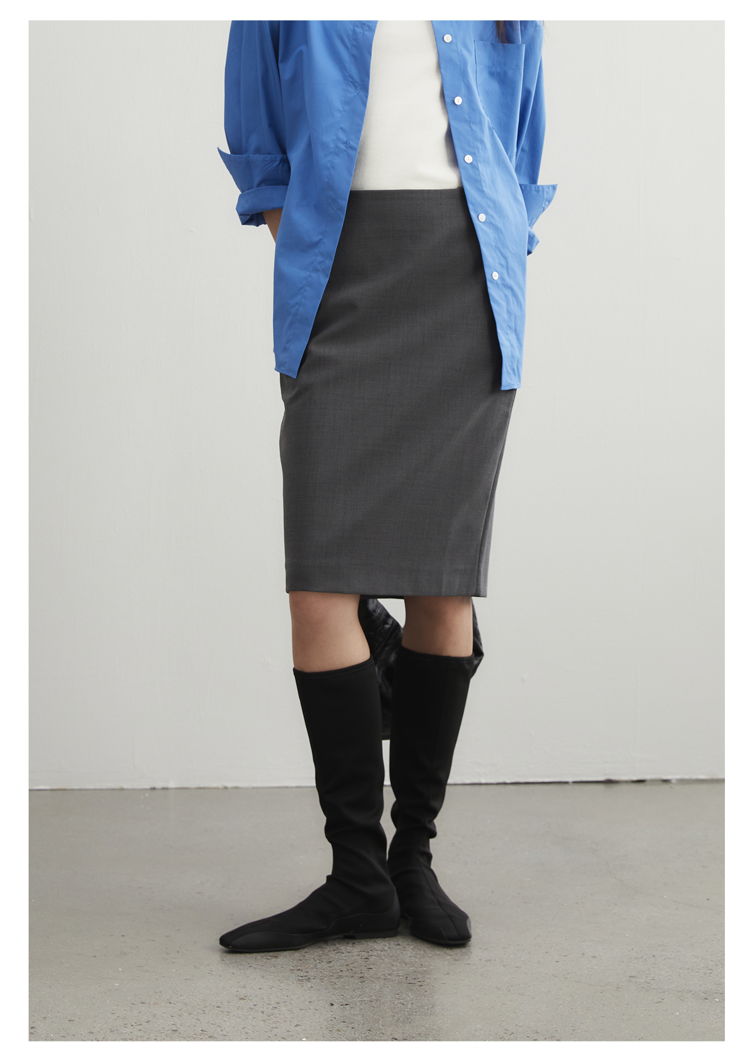 棉仓3531517014-秋冬通勤灰色半身裙 步履不停厚款直筒中裙