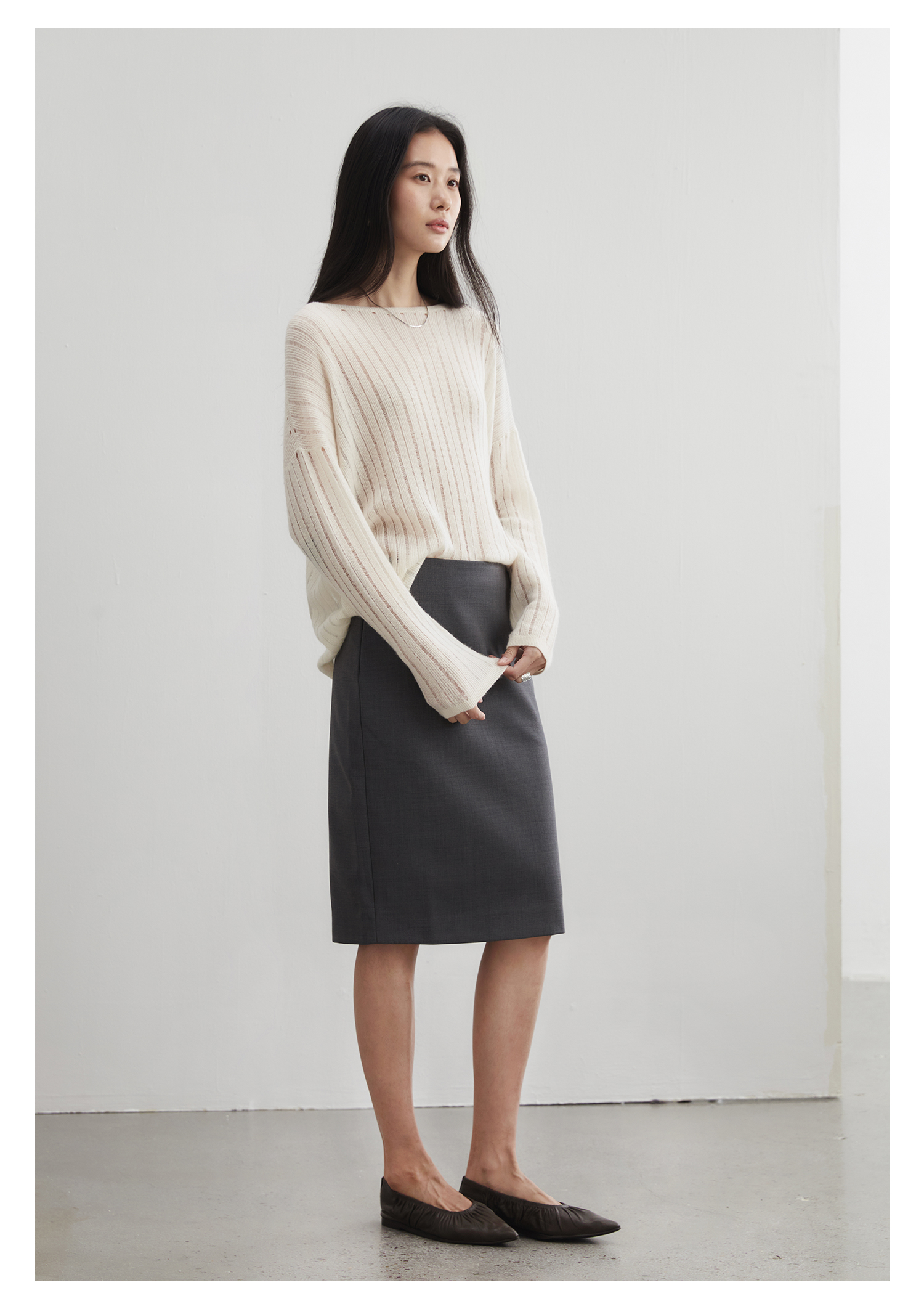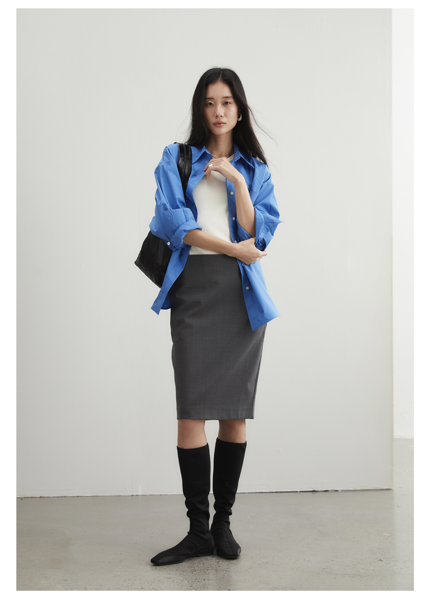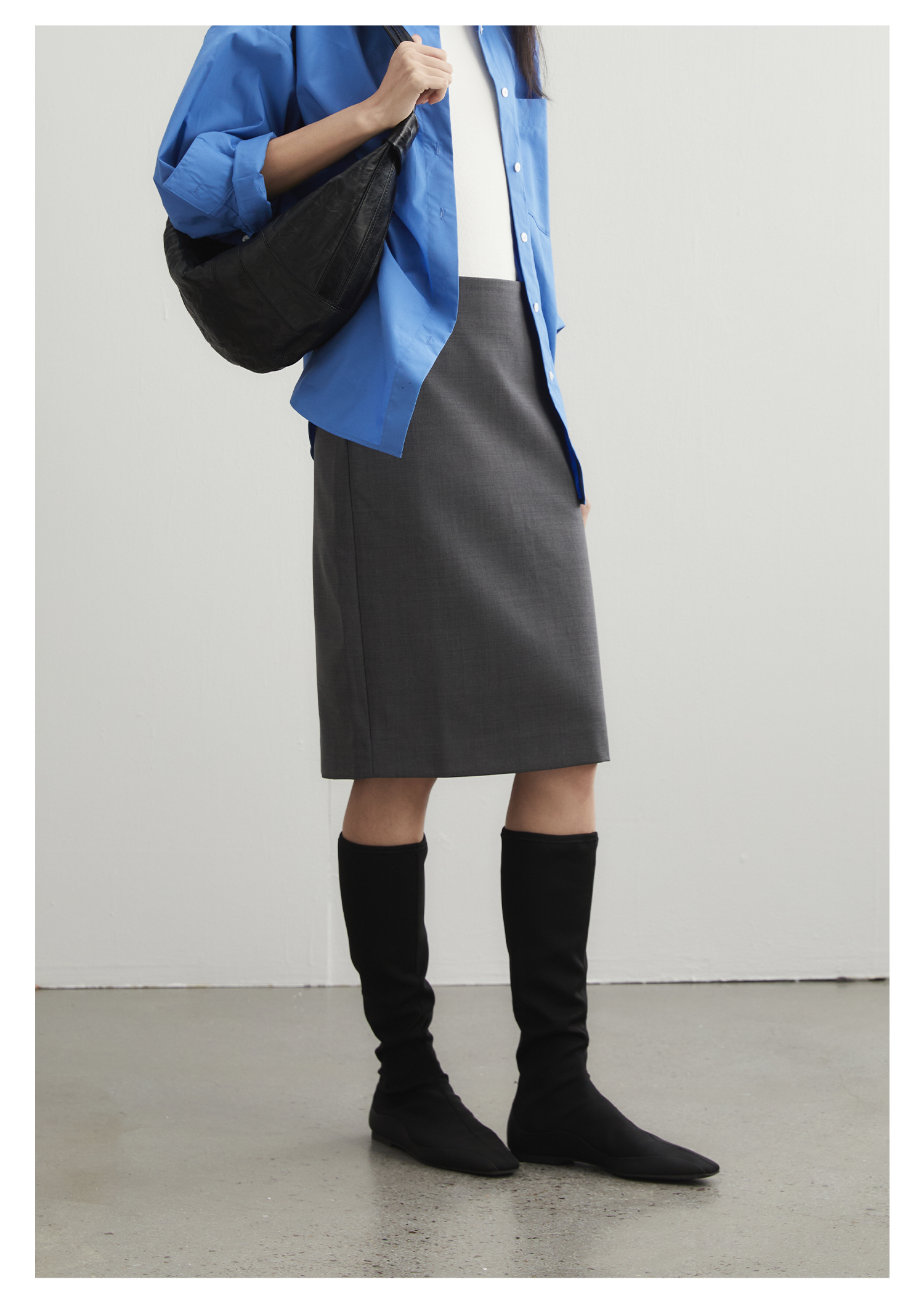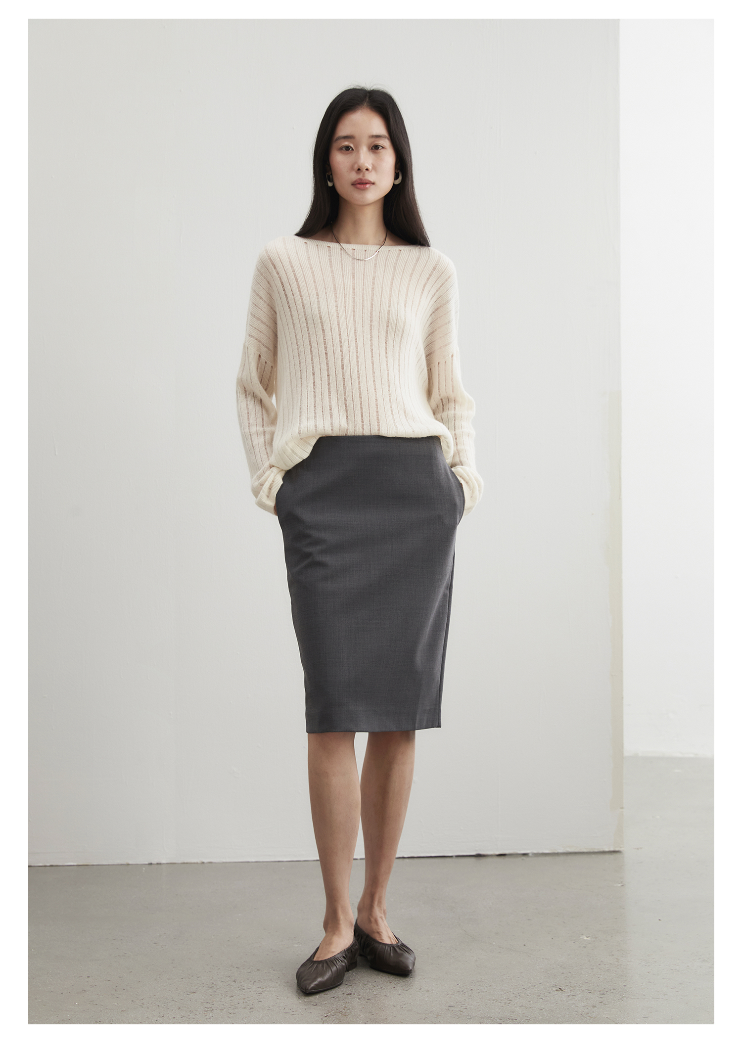 棉仓3531517014-秋冬通勤灰色半身裙 步履不停厚款直筒中裙