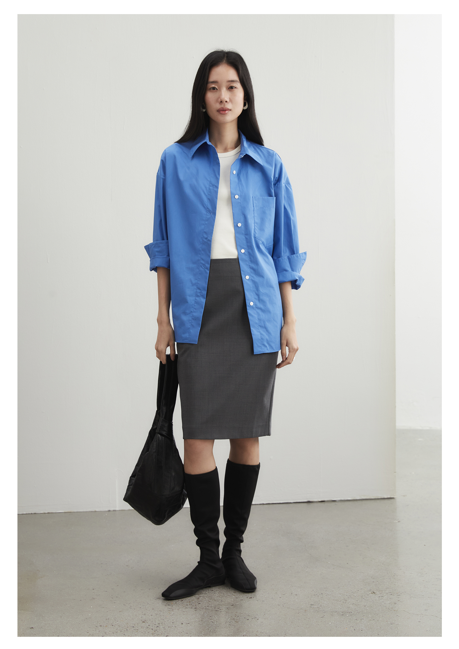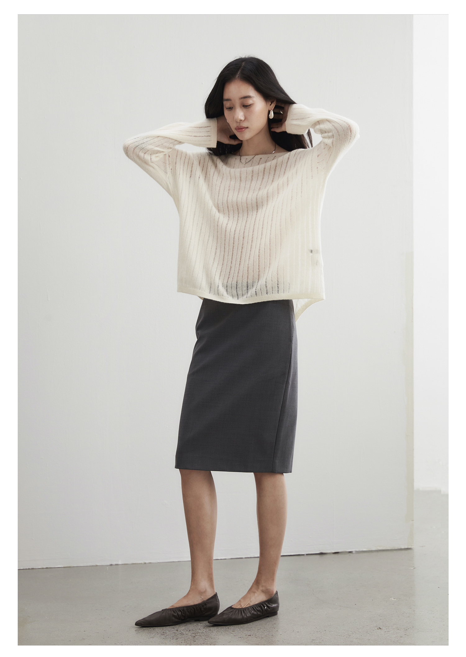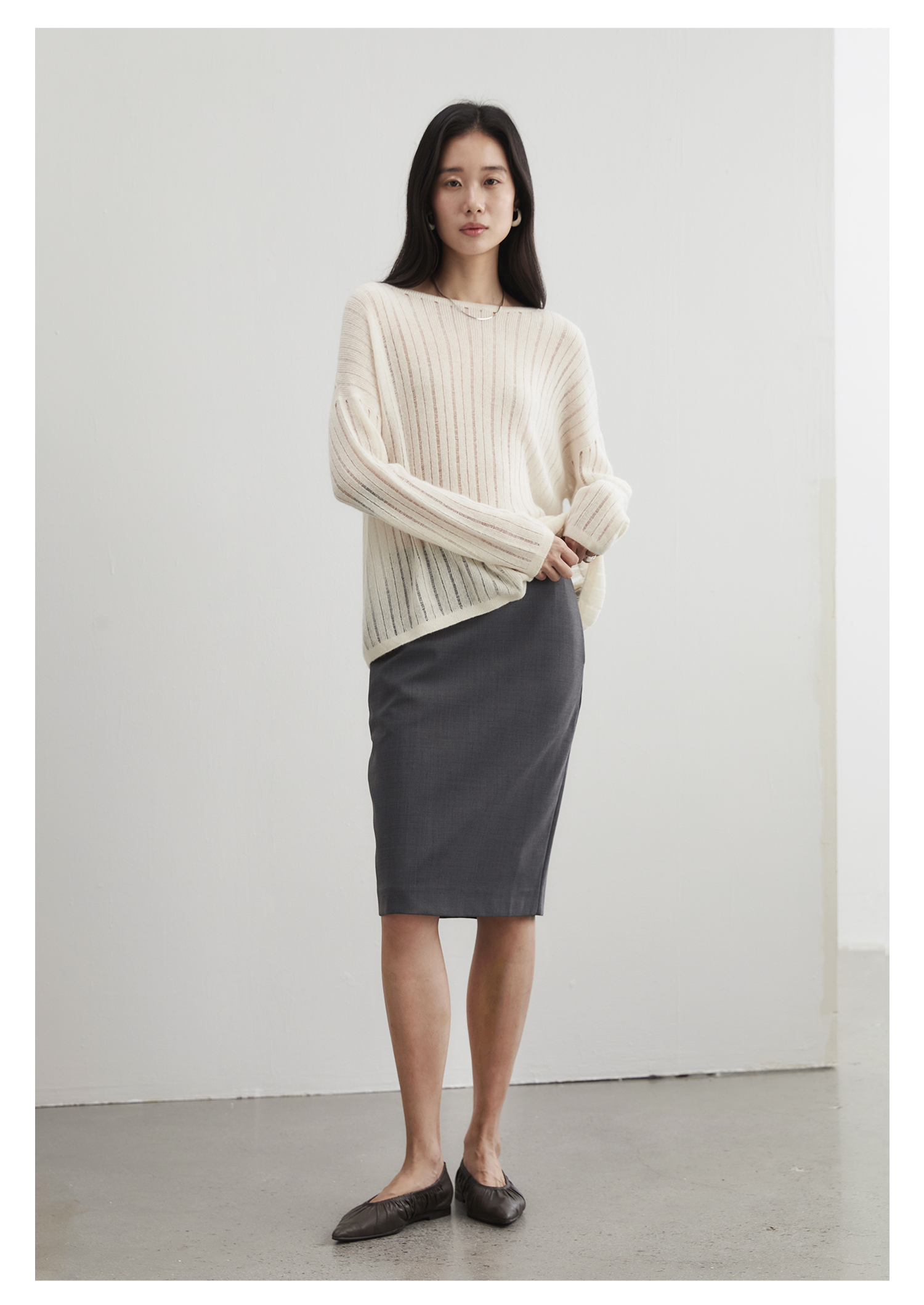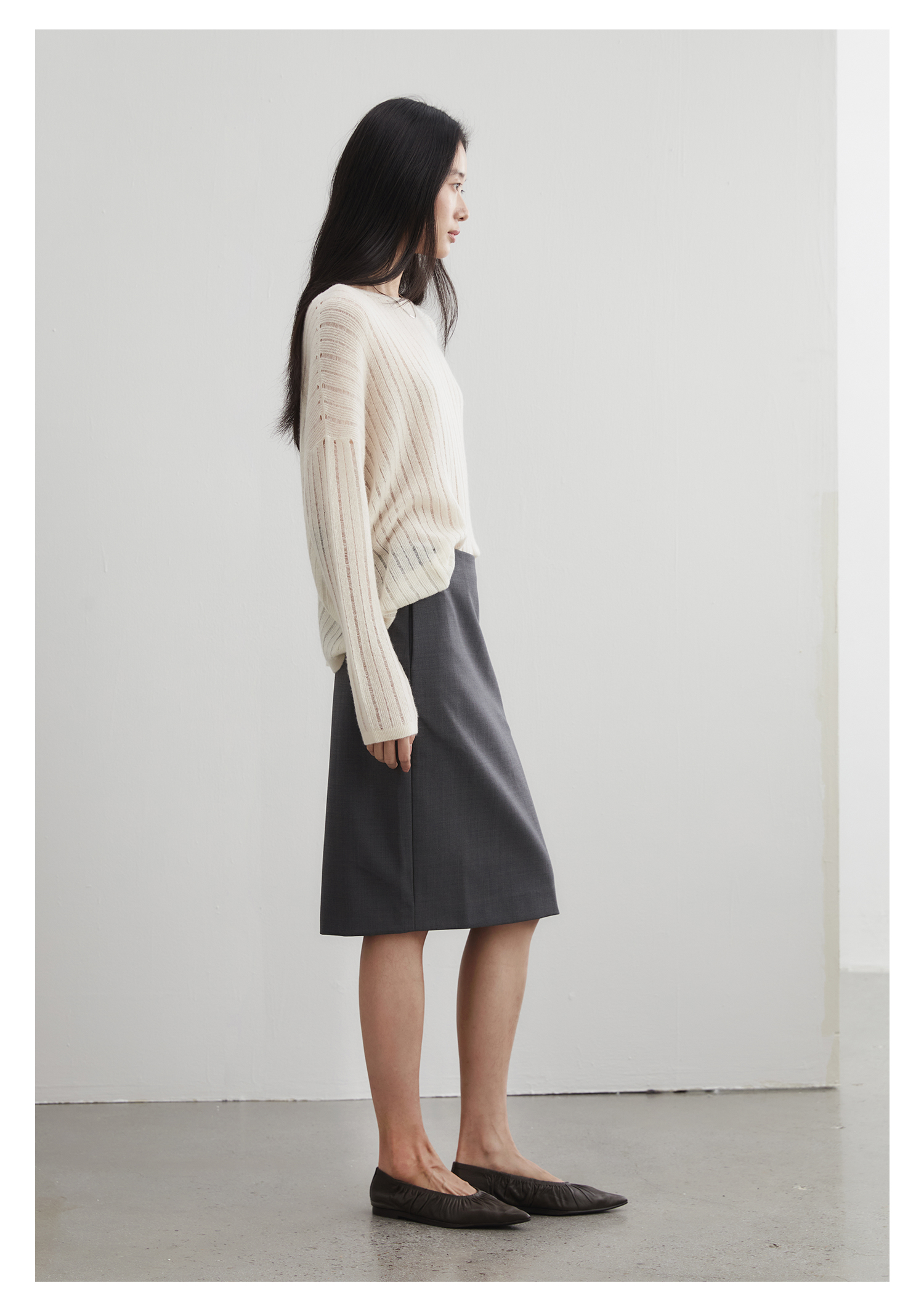 棉仓3531517014-秋冬通勤灰色半身裙 步履不停厚款直筒中裙